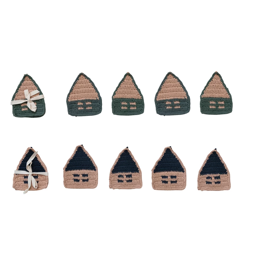 Handmade Cotton Crocheted House Shaped Coasters, 2 Colors, Set of 4
