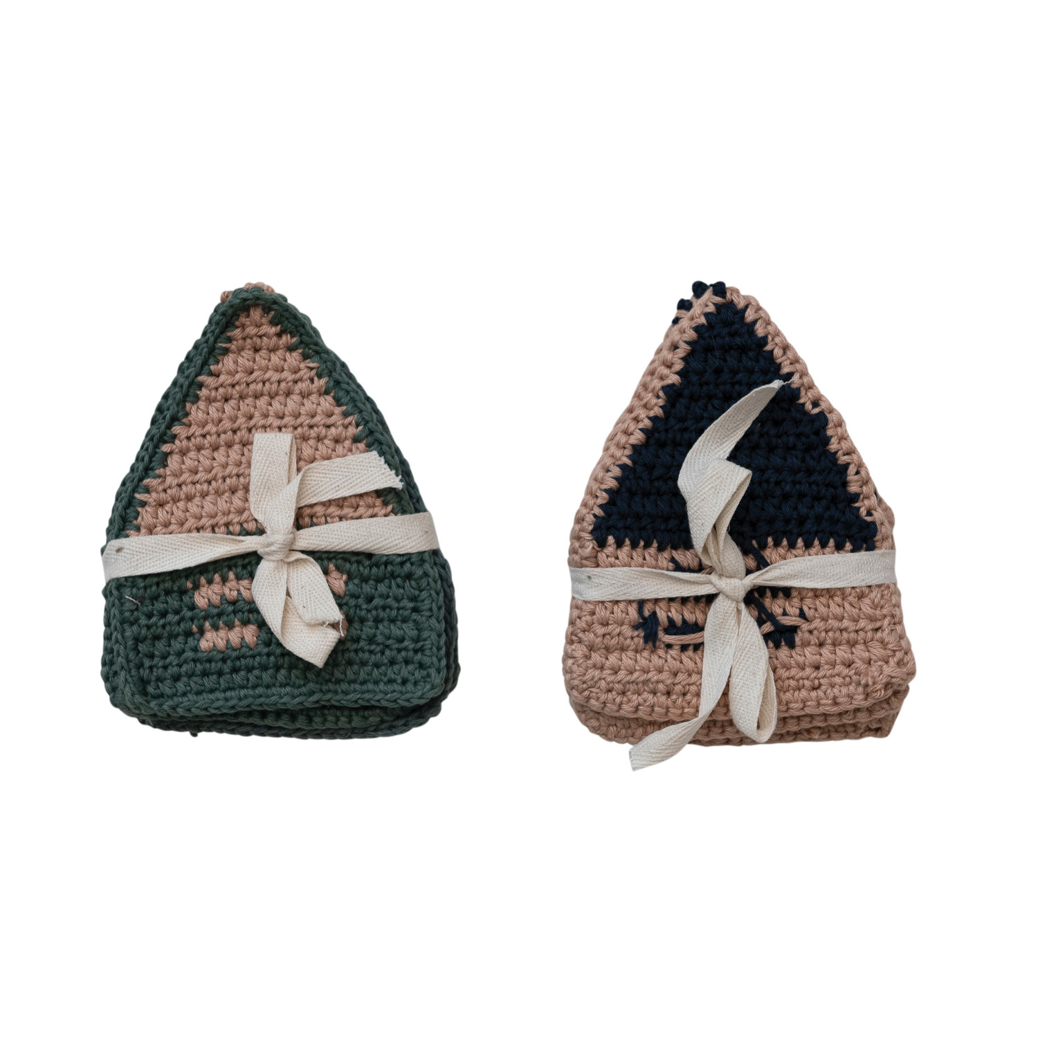 Catalog Name: 5-1/2"L x 4-1/2"W Cotton Crocheted House Shaped Coasters, Set of 4 Tied w/ Cotton Tape, 2 Colors