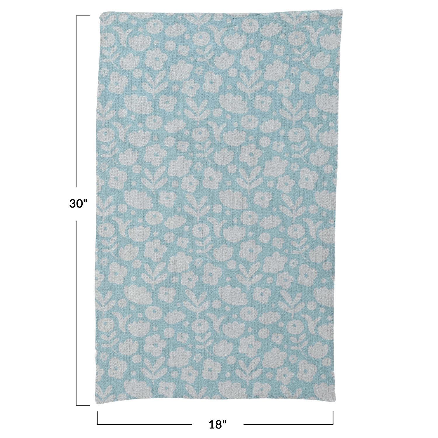 Catalog Name: 30"L x 18"W Printed Recycled Microfibre Tea Towel w/ Floral Pattern, Mint Color & White