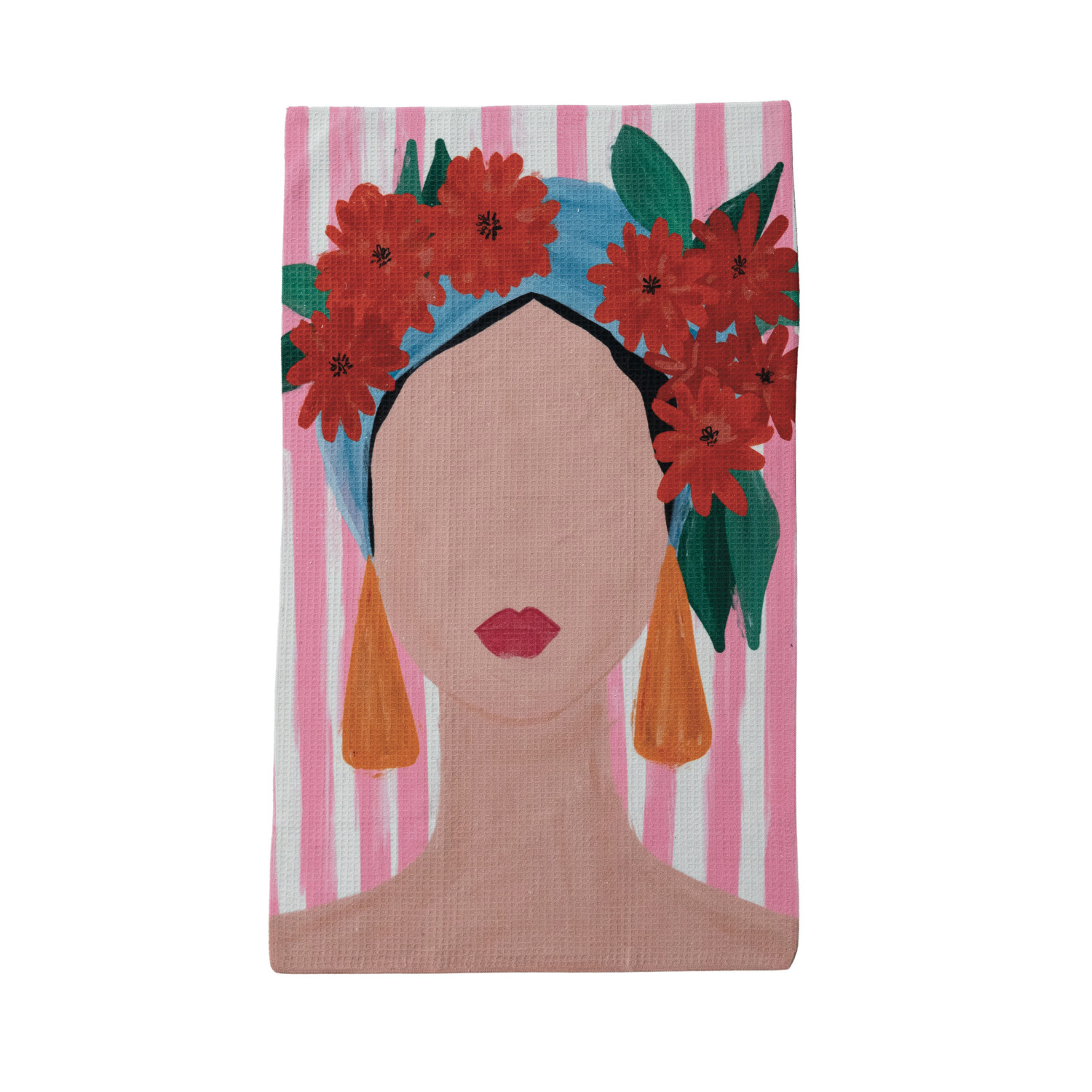 Catalog Name: 30"L x 18"W Printed Recycled Microfibre Tea Towel w/ Portrait of a Woman, Multi Color