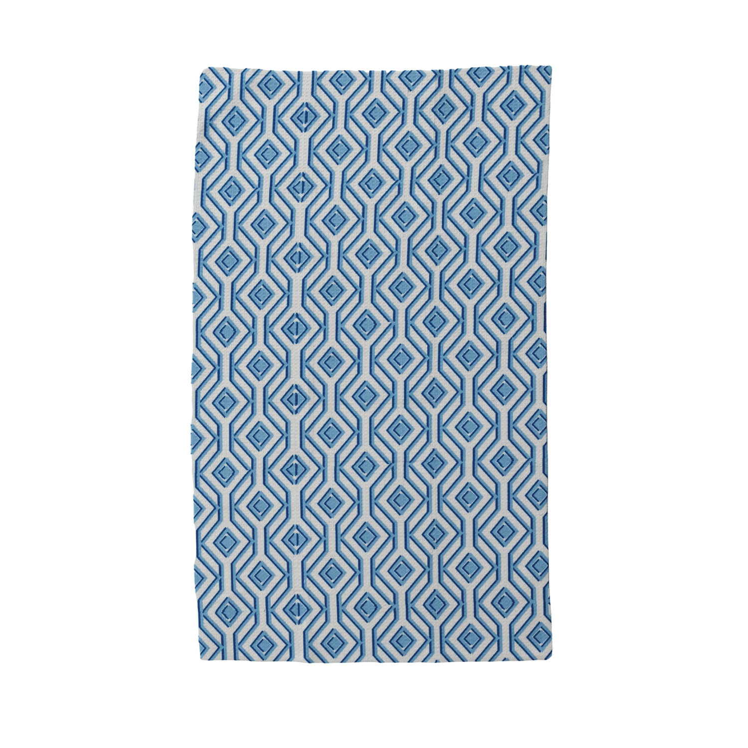 Catalog Name: 30"L x 18"W Printed Recycled Microfibre Tea Towel w/ Geometric Diamond Pattern, Blue & White