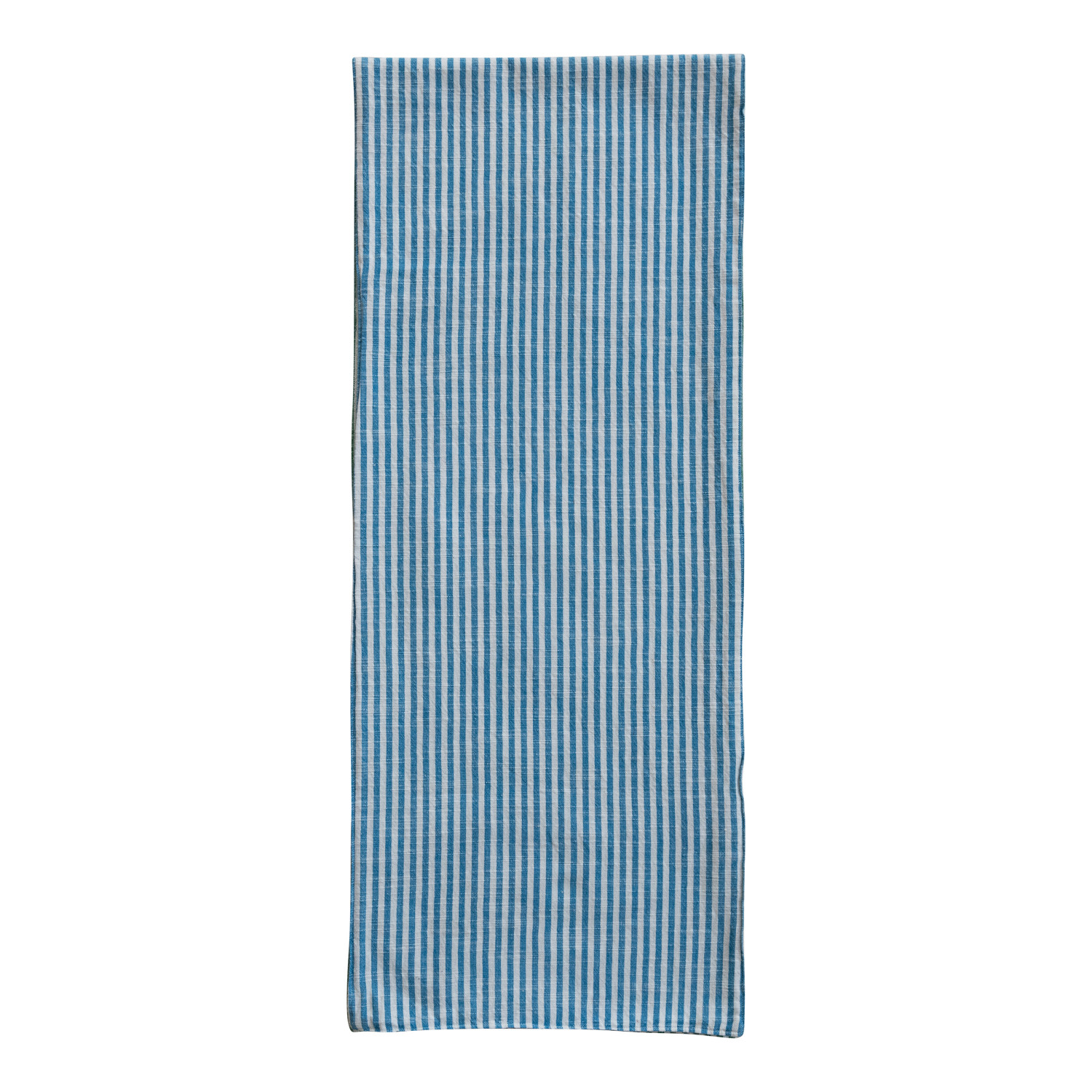 Woven Cotton Two-Sided Striped Table Runner, Blue, Green & Natural