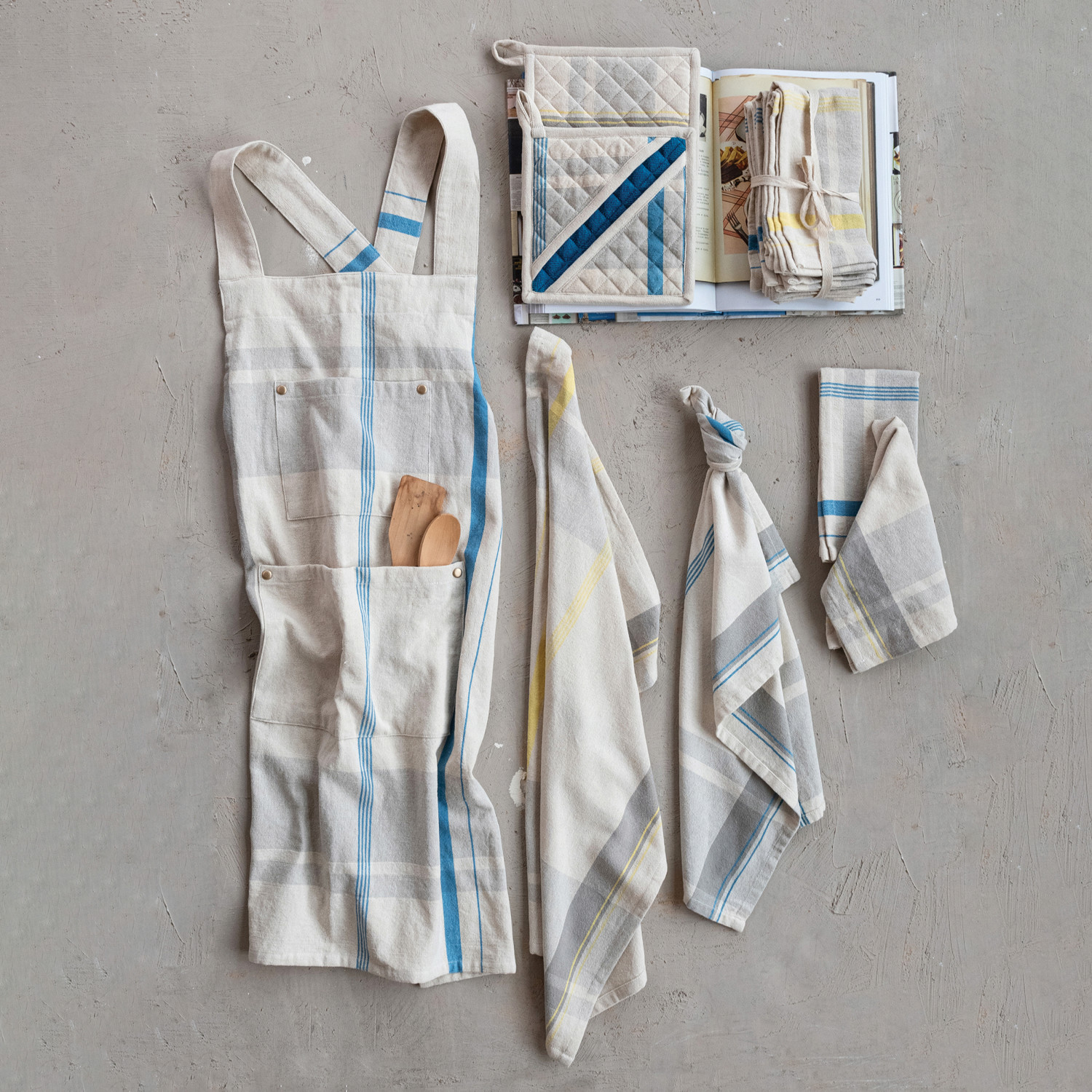 Catalog Name: 8" Square Quilted Cotton Pincher Pot Holder w/ Terry Inside Pocket & Stripes, 2 Colors