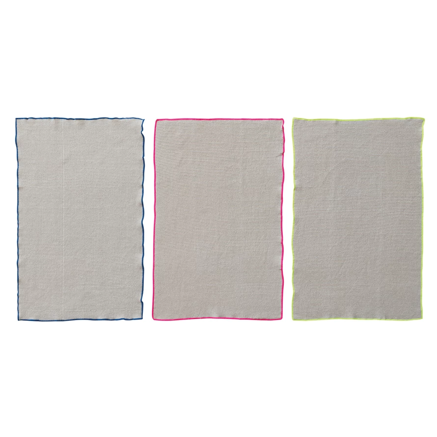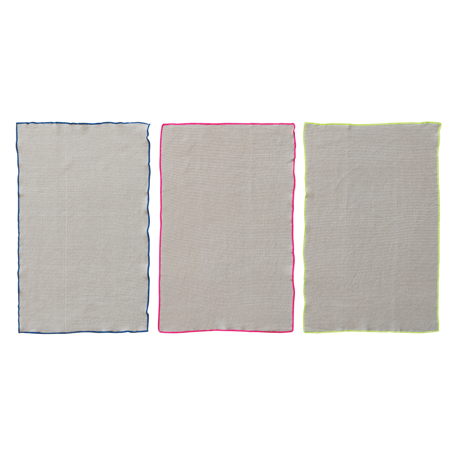 Cotton Blend Waffle Weave Tea Towel with Neon Trim, 3 Colors