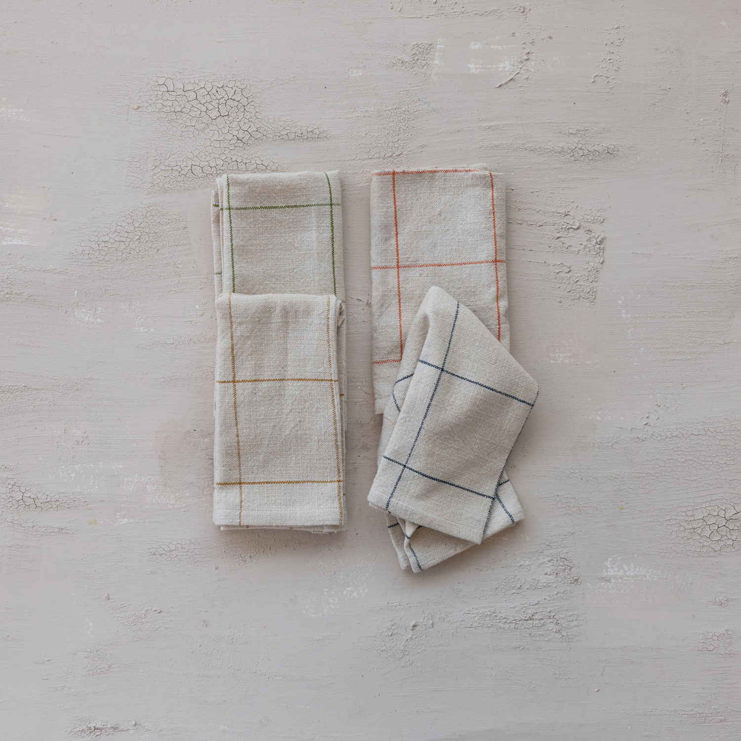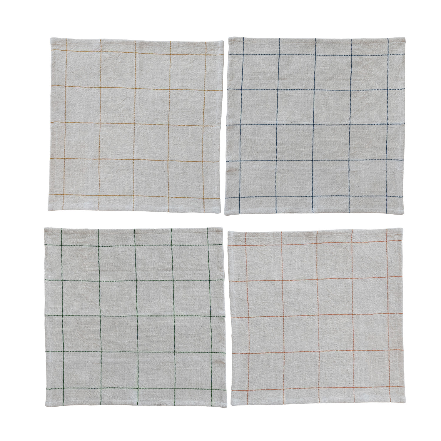 Woven Cotton Napkins with Grid Pattern, 4 Colors, Set of 4