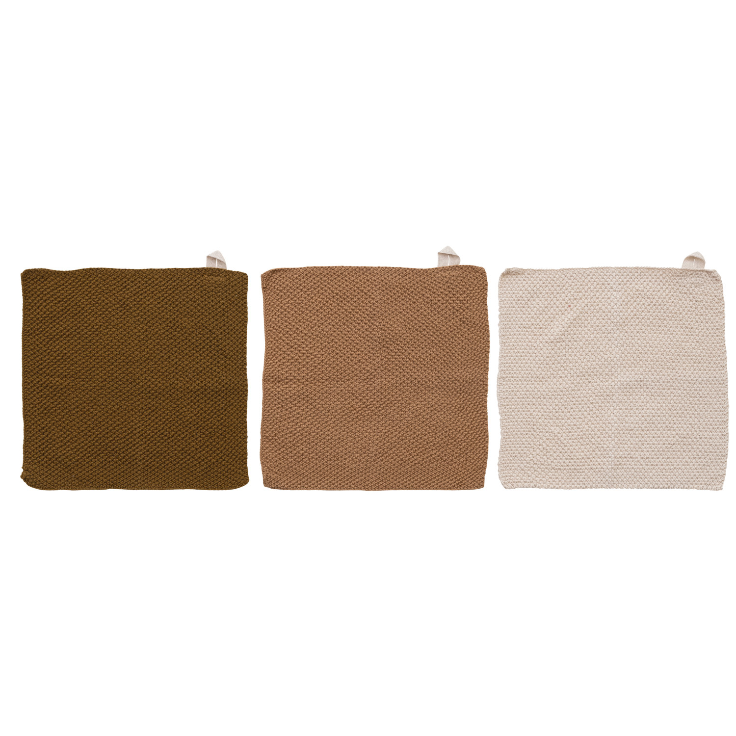 Catalog Name: 10-1/2" Square Cotton Knit Dish Cloths, Multi Color, Set of 3 Tied w/ Cotton Tape