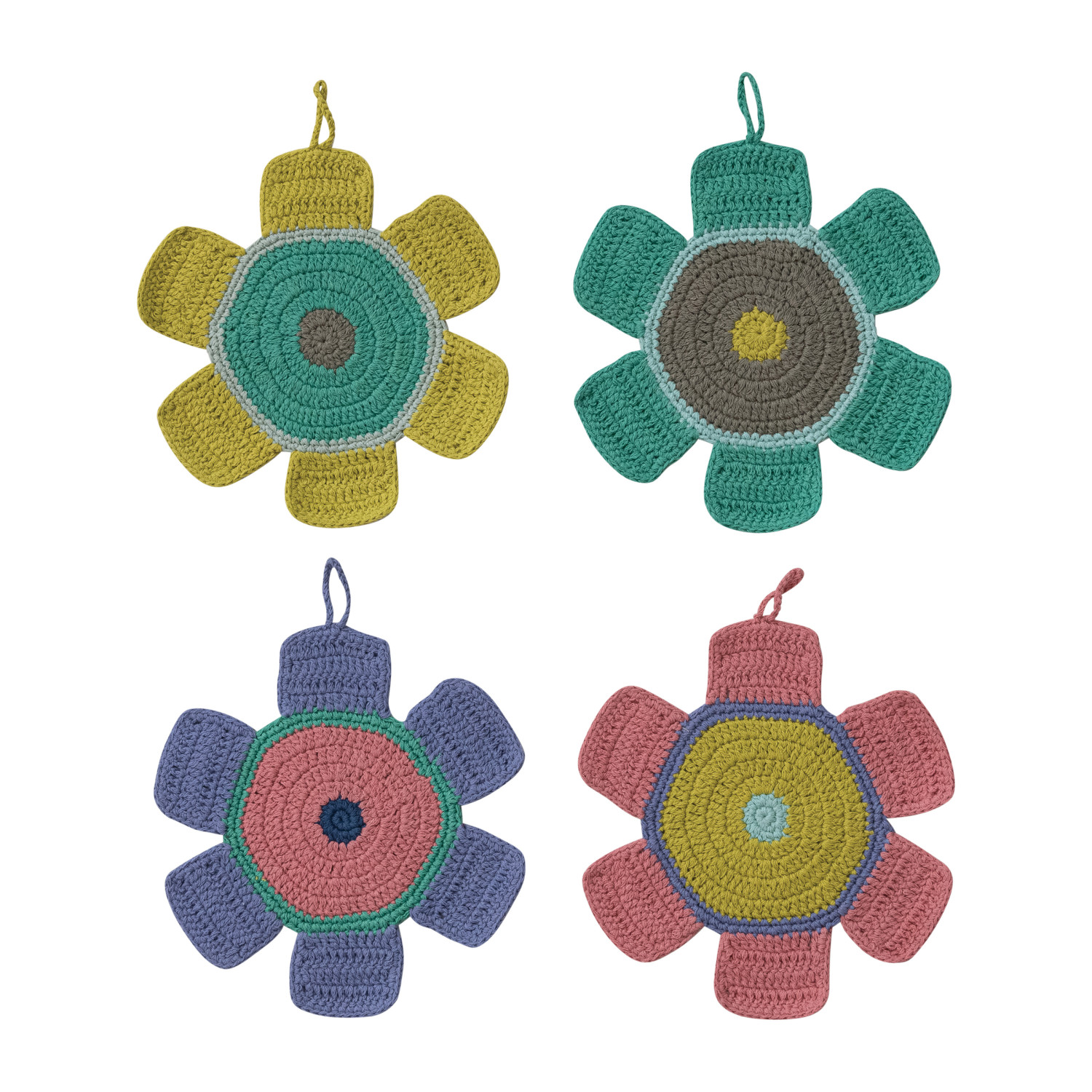 Cotton Crocheted Flower Shaped Pot Holder, 4 Styles