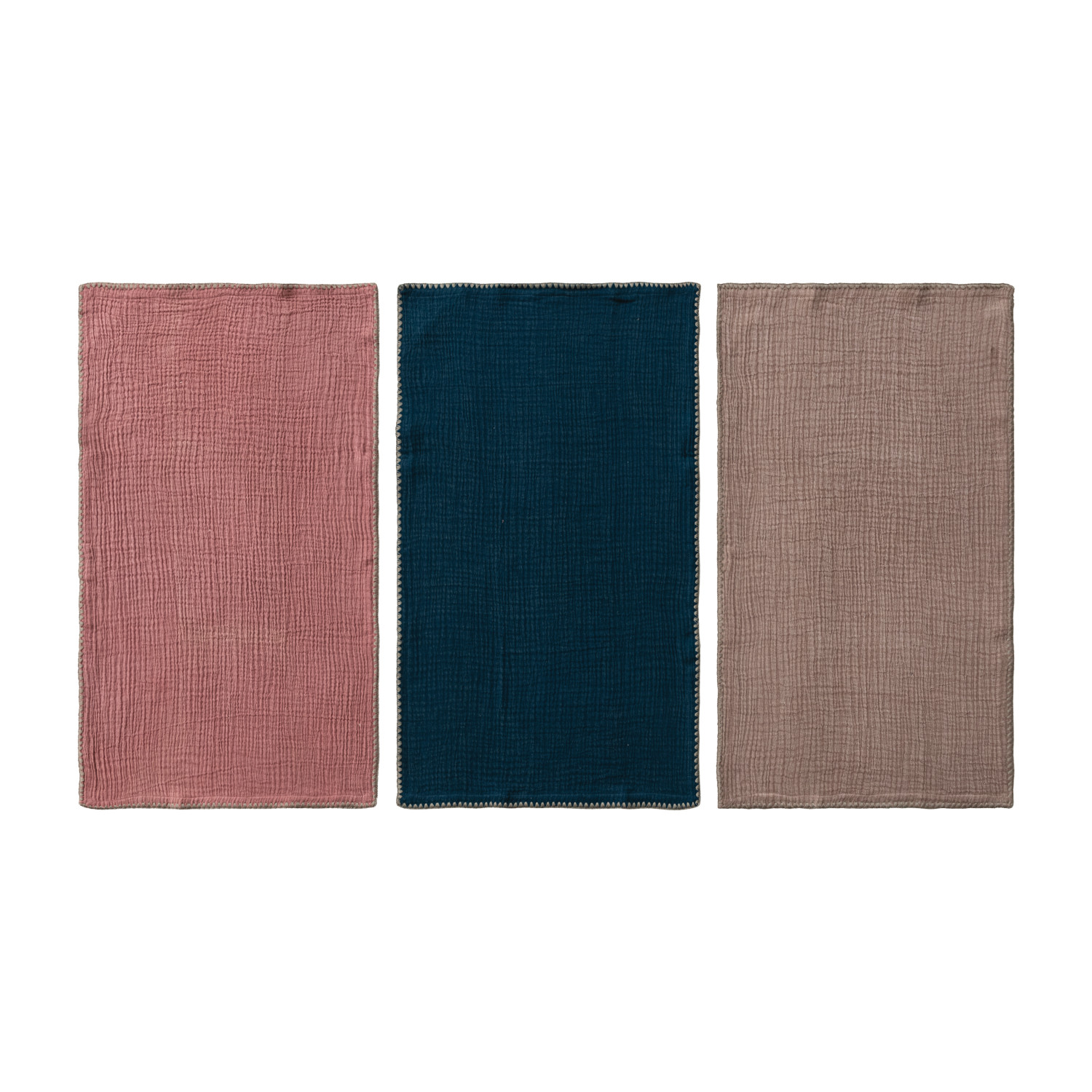 Stonewashed Cotton Double Cloth Tea Towel with Taupe Stitched Edge, 3 Colors