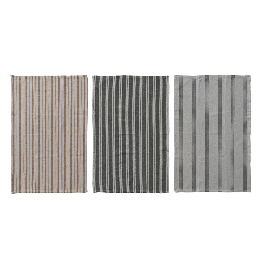 Woven Cotton Slub Tea Towel with Stripes, 3 Styles