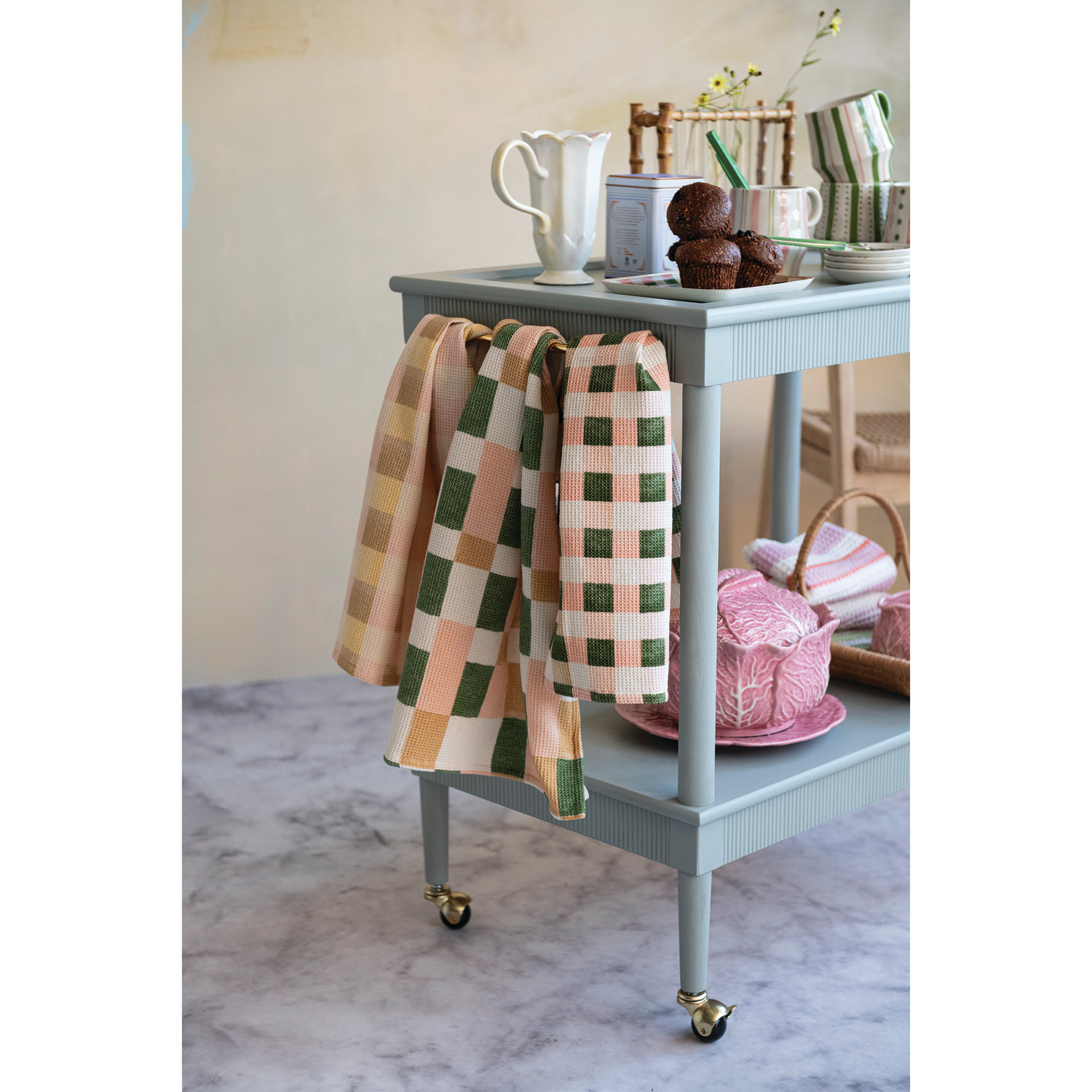 Cotton Blend Waffle Weave Tea Towel with Check/Plaid Pattern, 3 Styles