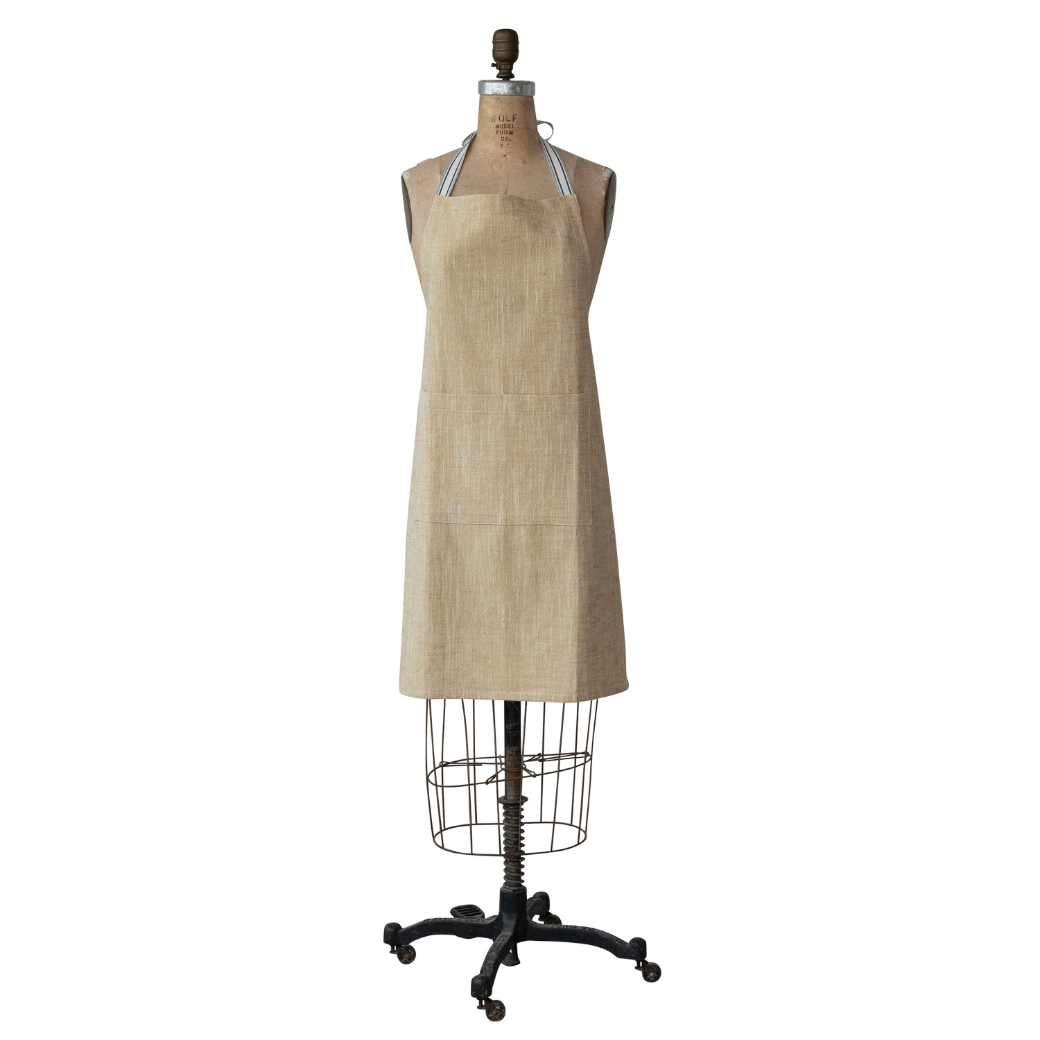 Woven Cotton Apron with Striped Straps & 2 Pockets