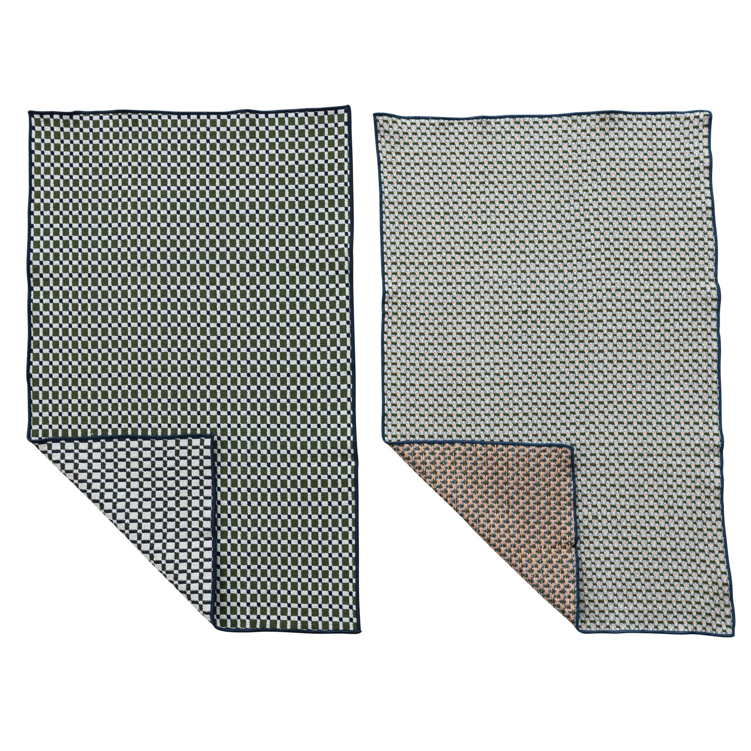 Woven Cotton Tea Towel with Pattern & Stitched Edge, 2 Styles