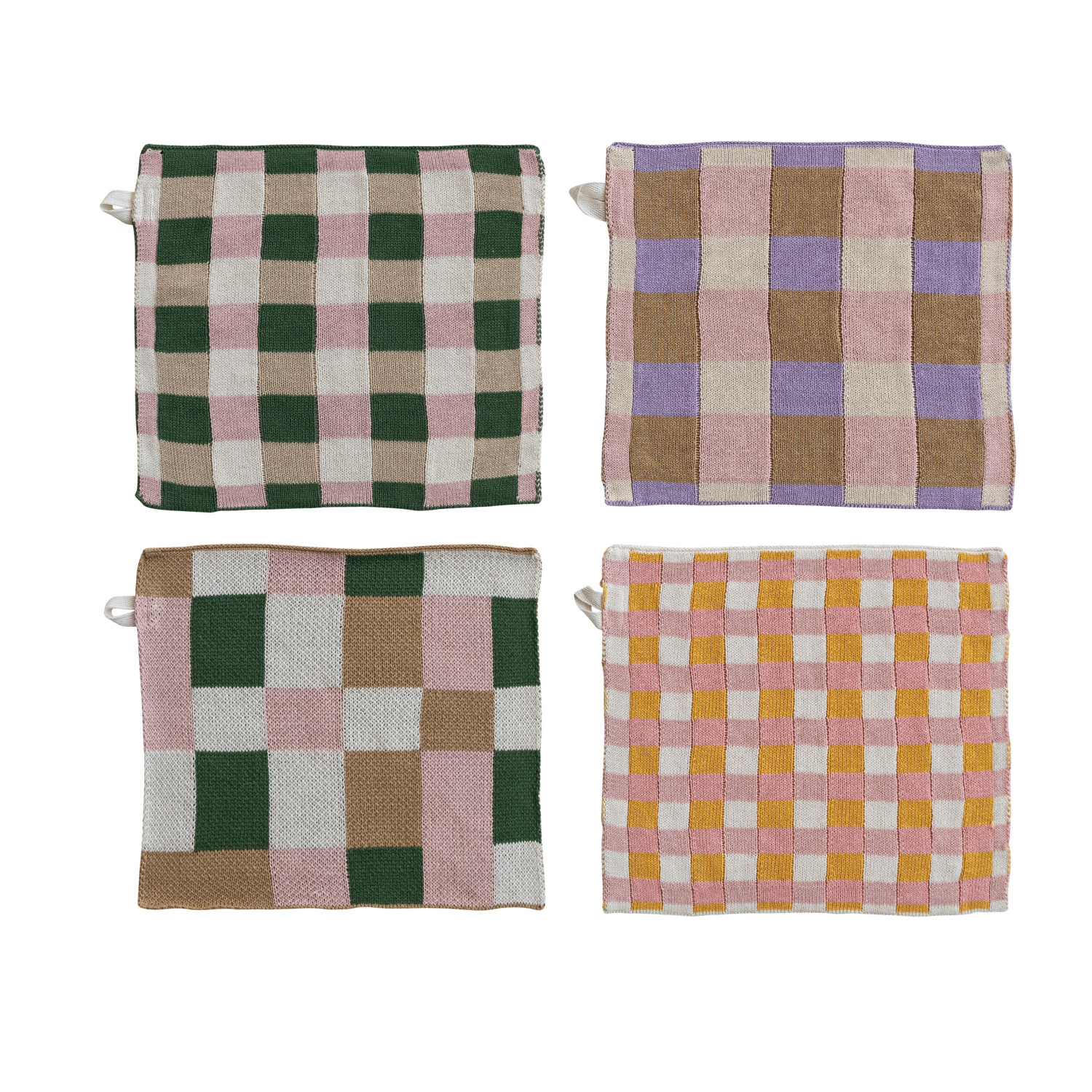 Catalog Name: 10-1/2" Square Cotton Knit Dish Cloth w/ Check/Plaid Pattern, Multi Color, 4 Styles