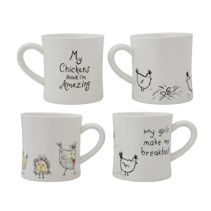 Stoneware Mug with Chickens, 2 Styles