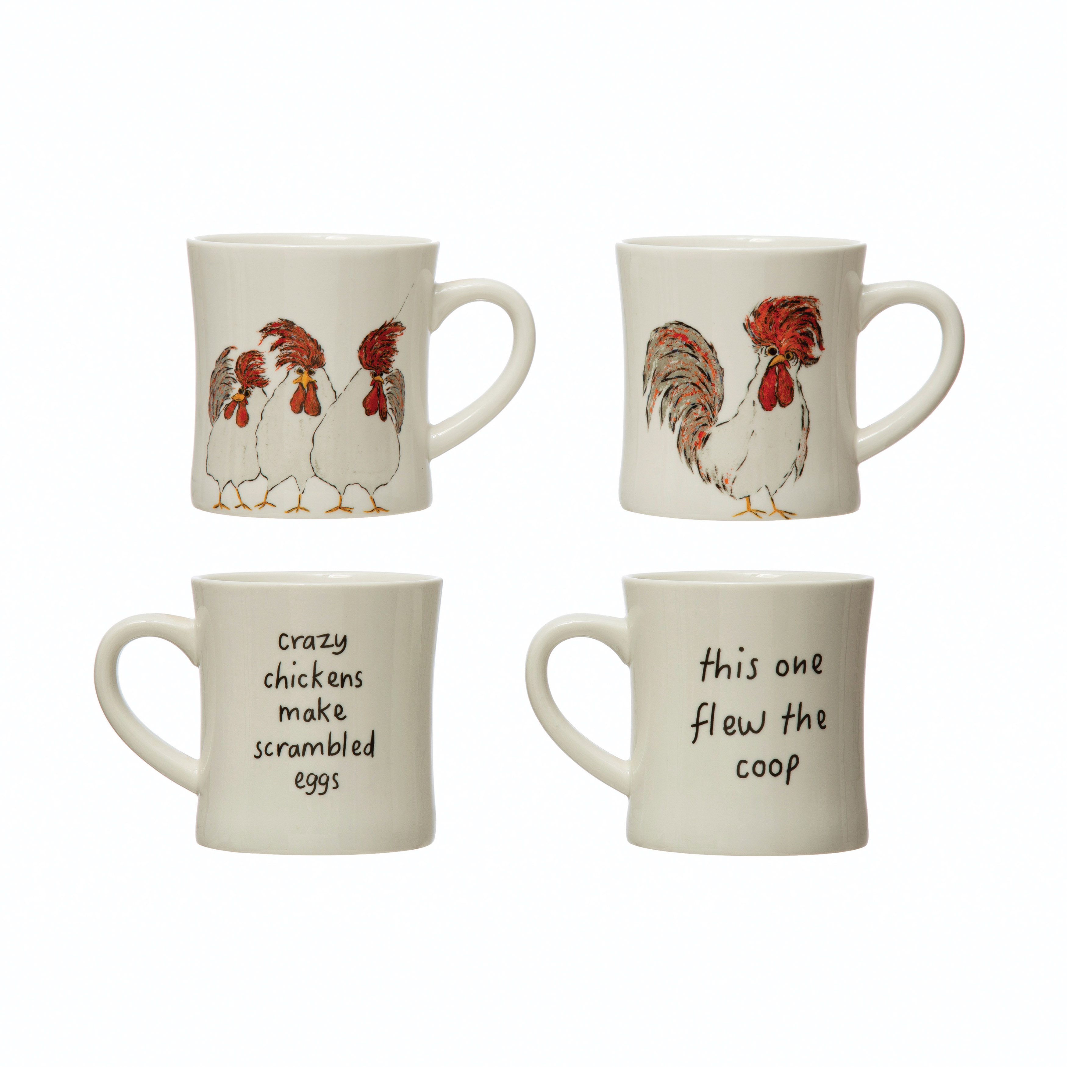 Catalog Name: 3-1/2" Round x 4"H 12 oz. Stoneware Mug w/ Chicken & Saying, Multi Color, 2 Styles ©