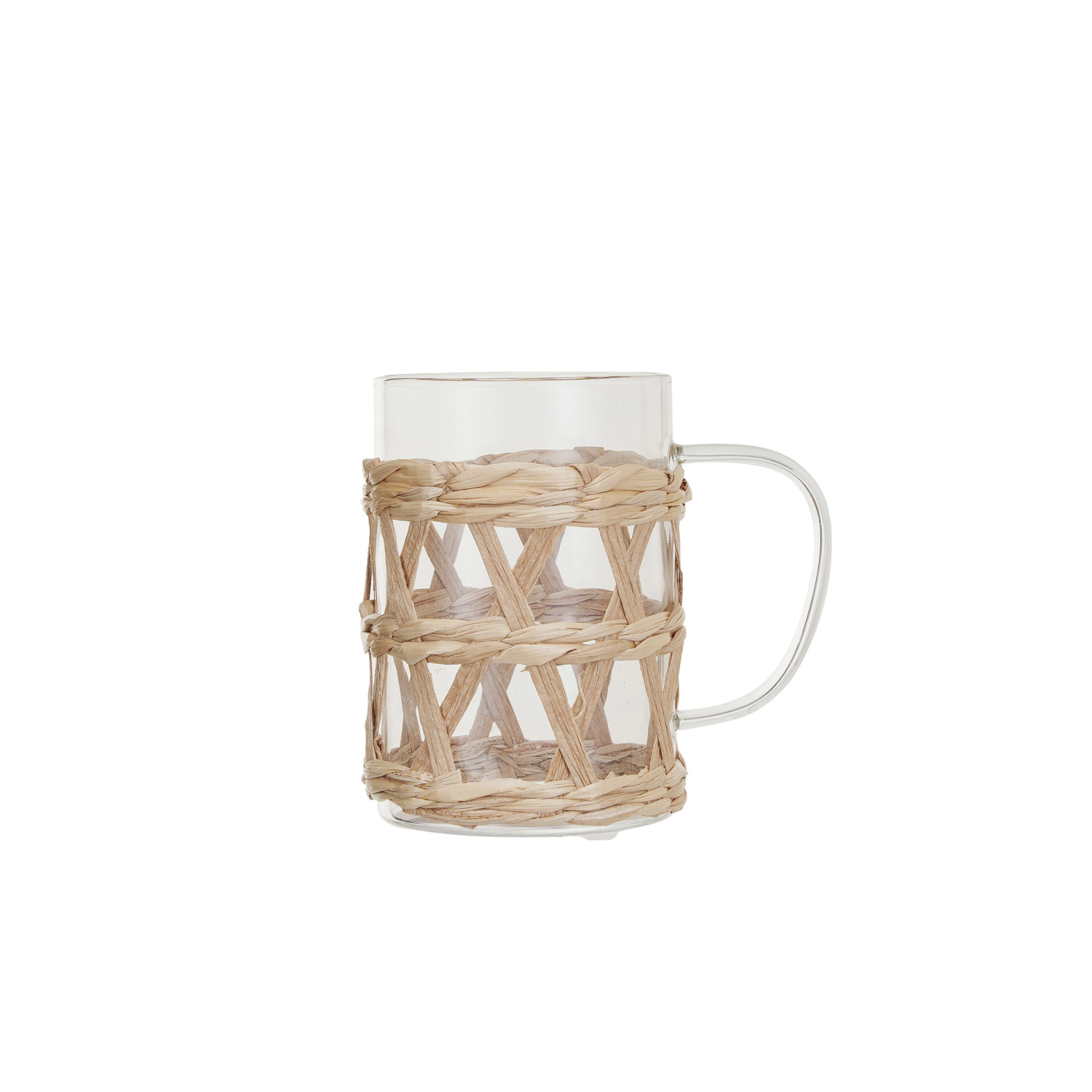 Catalog Name: 3" Round x 4"H 10 oz. Glass Mug w/ Woven Seagrass Sleeve, Natural