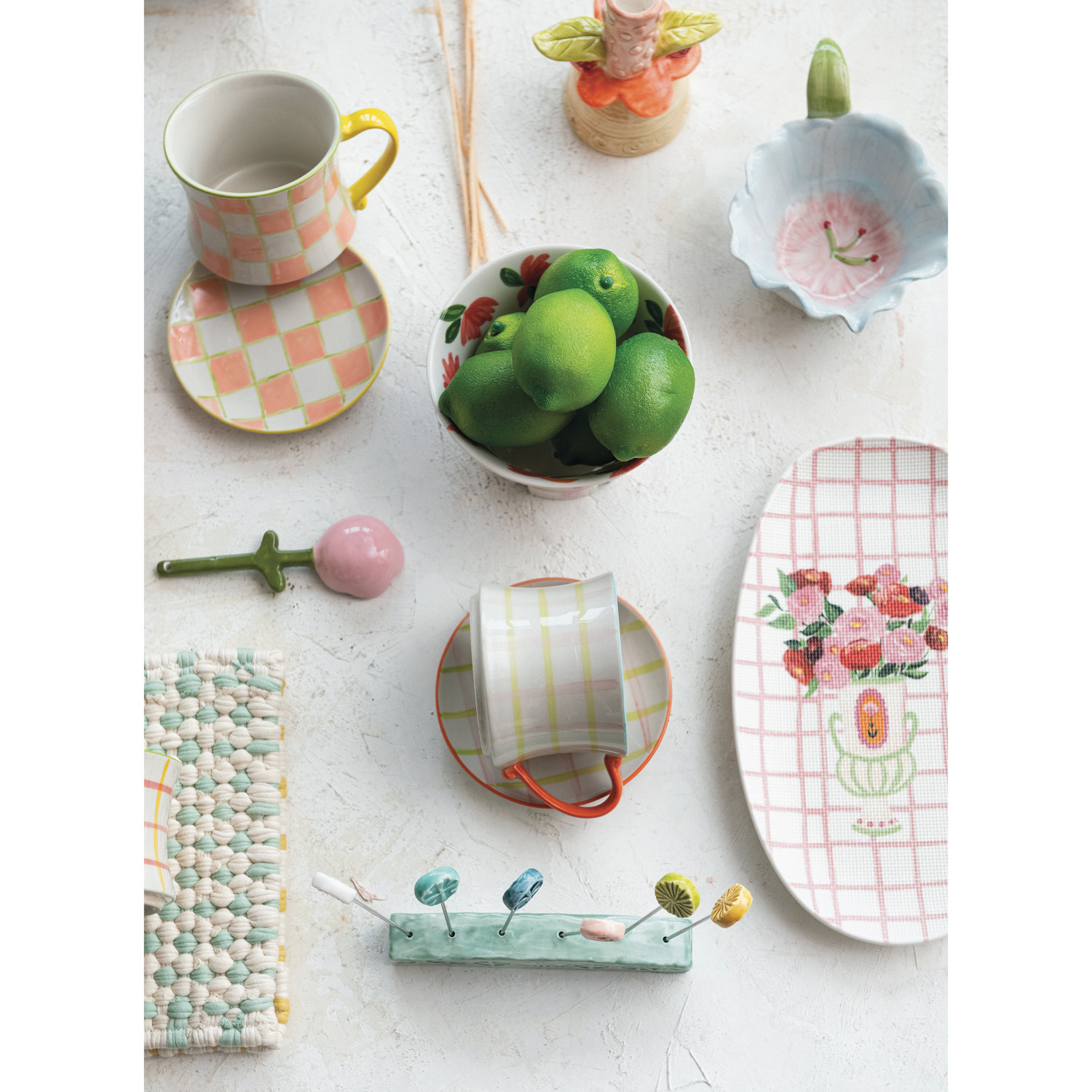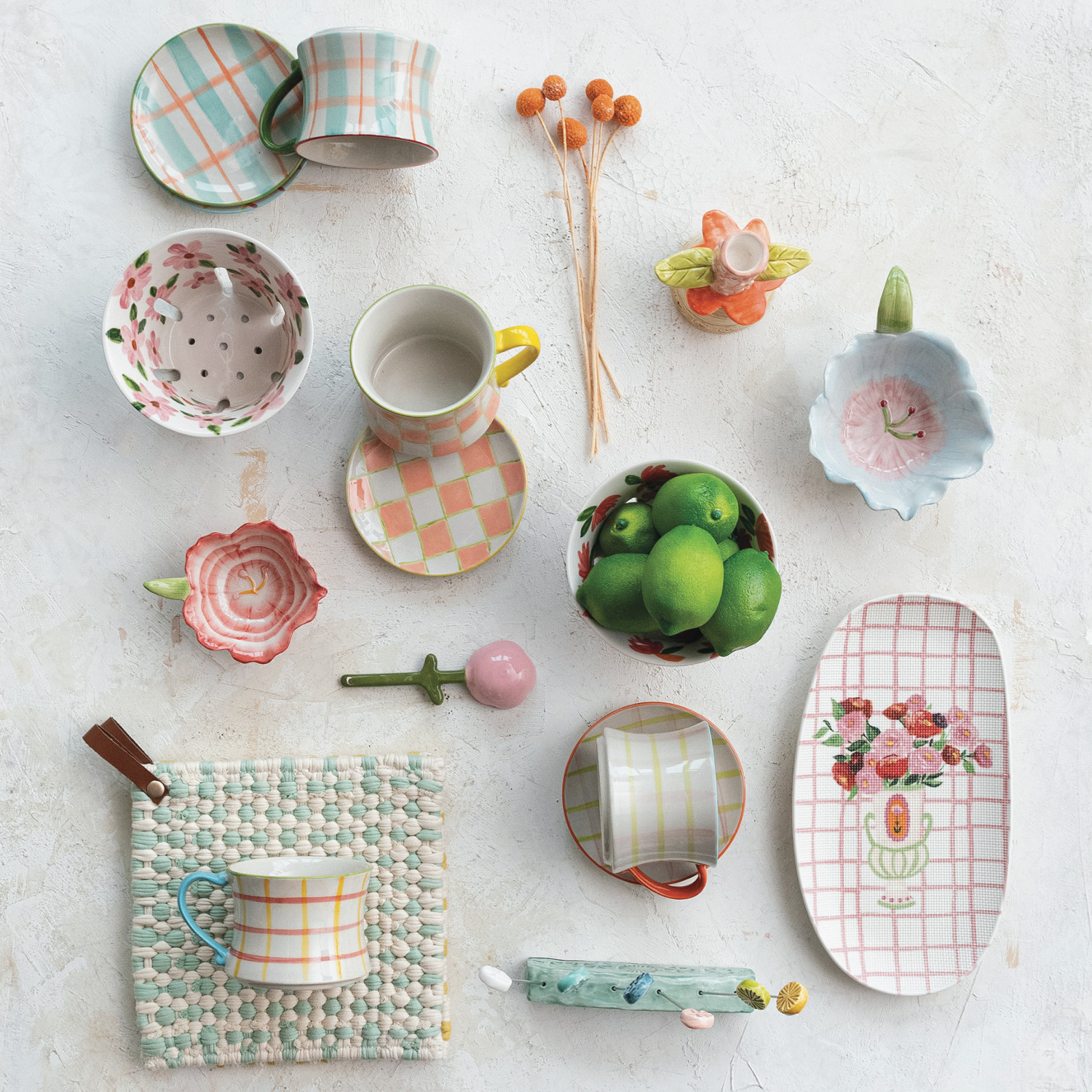 Catalog Name: 4" Round x 3"H 8 oz. Hand-Painted Stoneware Mug w/ Pattern, Multi Color, 4 Styles