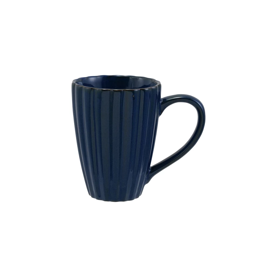 14 oz. Stoneware Ribbed Mug, Reactive Glaze, Blue (Each One Will Vary)