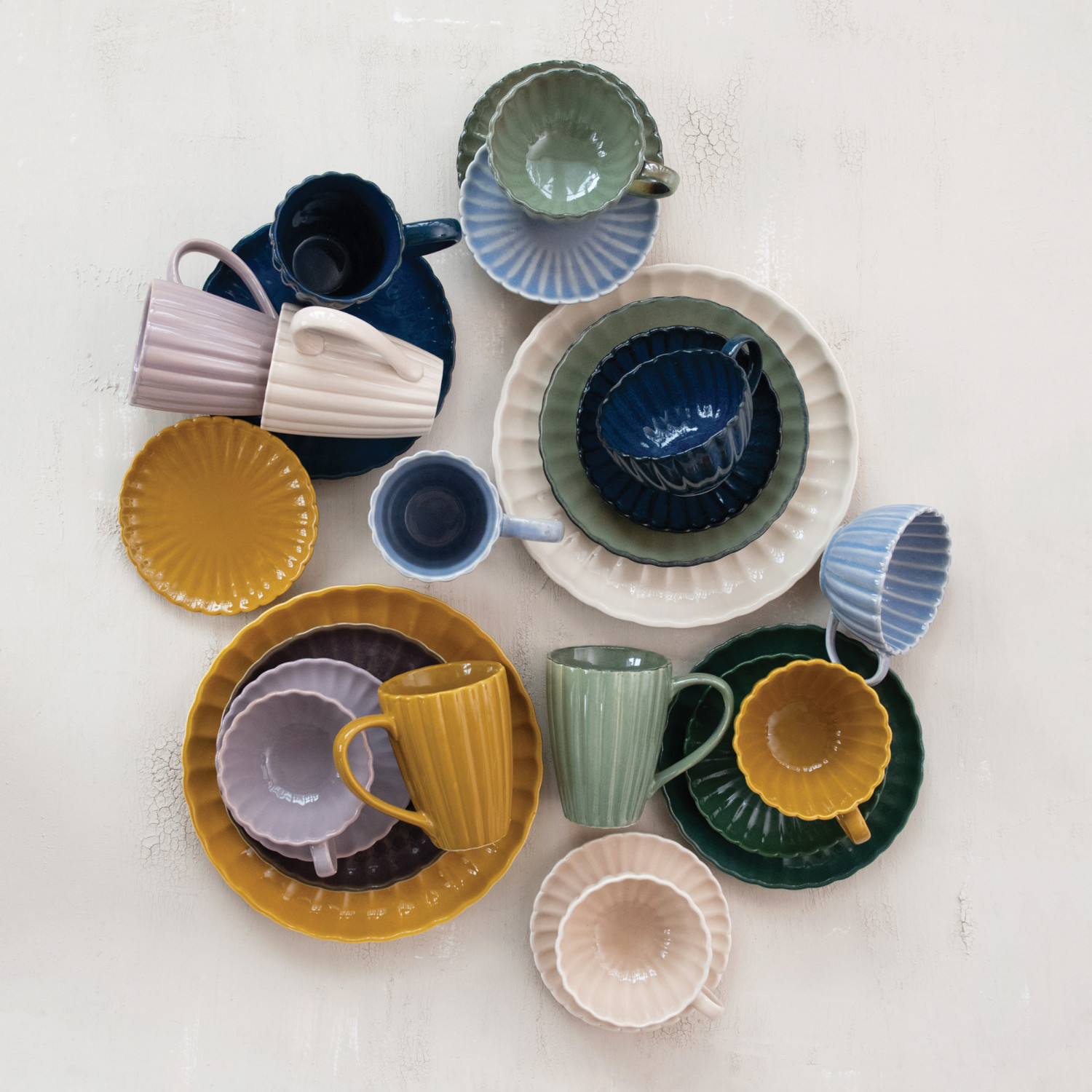 14 oz. Stoneware Ribbed Mug, Reactive Glaze, Green (Each One Will Vary)