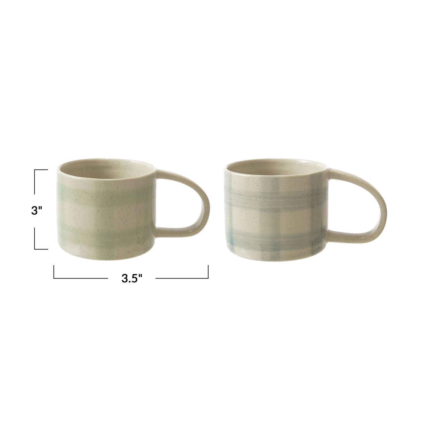 Catalog Name: 3-1/2" Round x 3"H 12 oz. Hand-Painted Stoneware Mug w/ Grid Pattern, Reactive Glaze, 2 Colors (Each One Will Vary)
