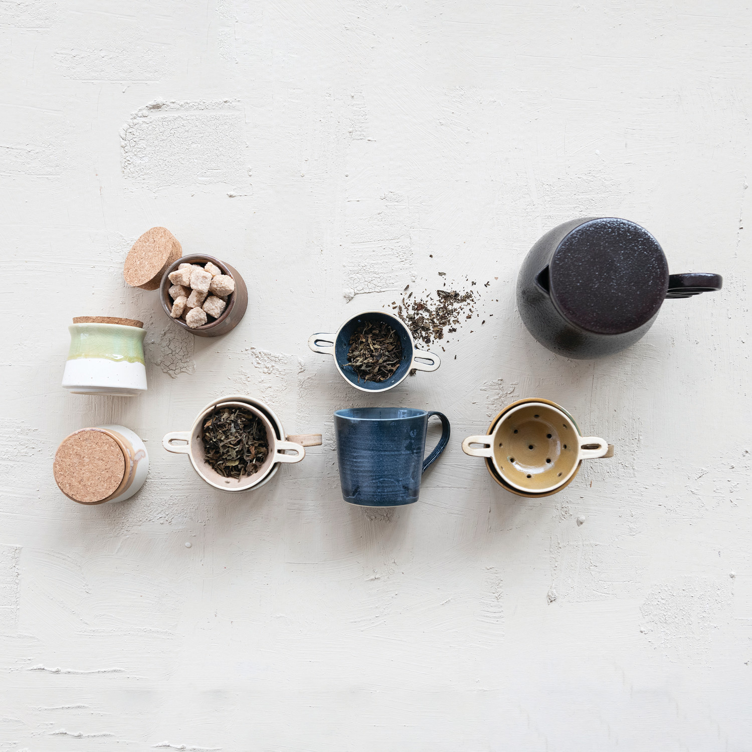 14 oz. Stoneware Mug with Strainer, Set of 2, 3 Colors (Each One Will Vary)