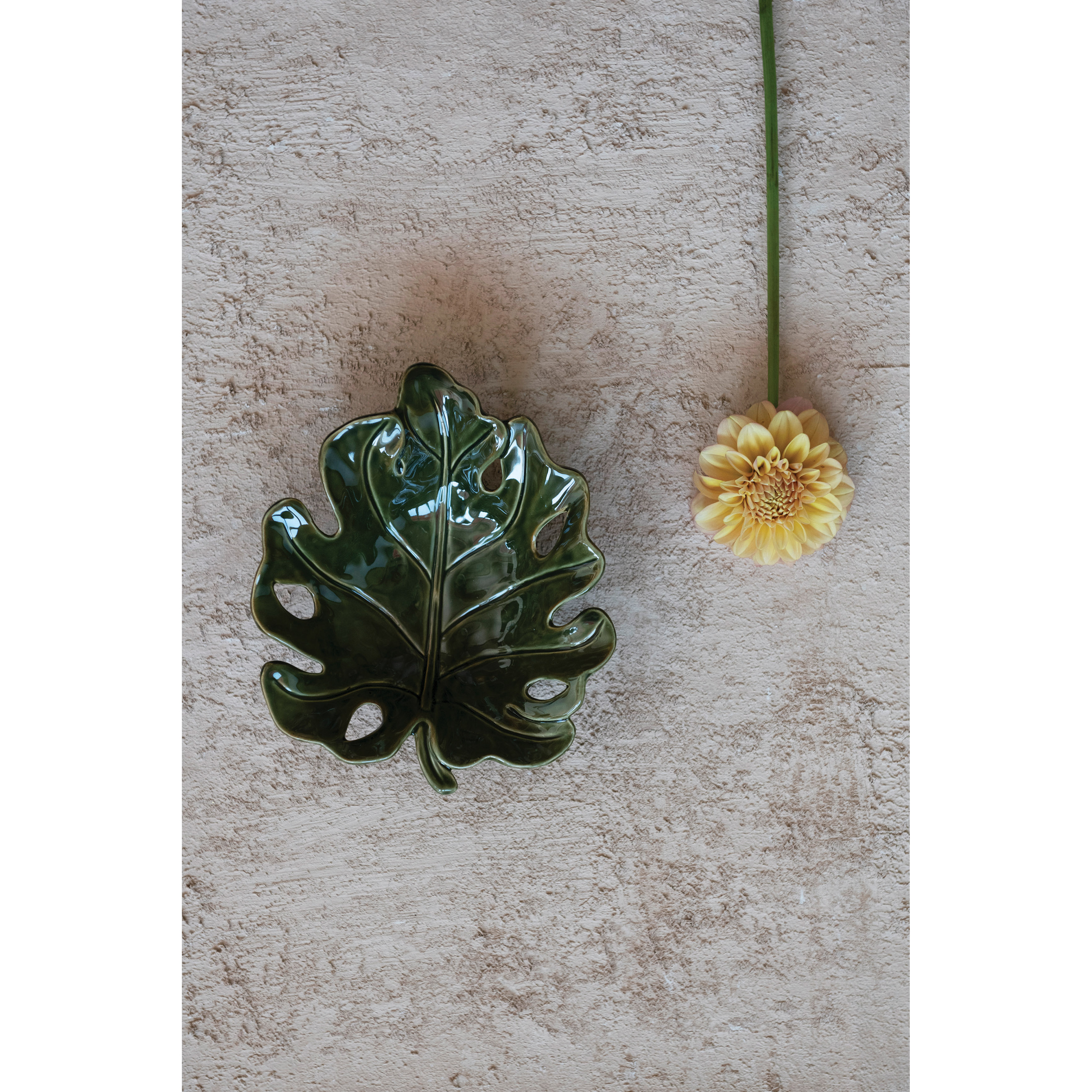 Green stoneware leaf bowl in a reactive glaze. Beautifully corral small everyday items, or decoratively display dried botanicals in this striking accent bowl. Made from 100% stoneware. Curate a space that reflects your unique sense of style with intentionally designed home décor.