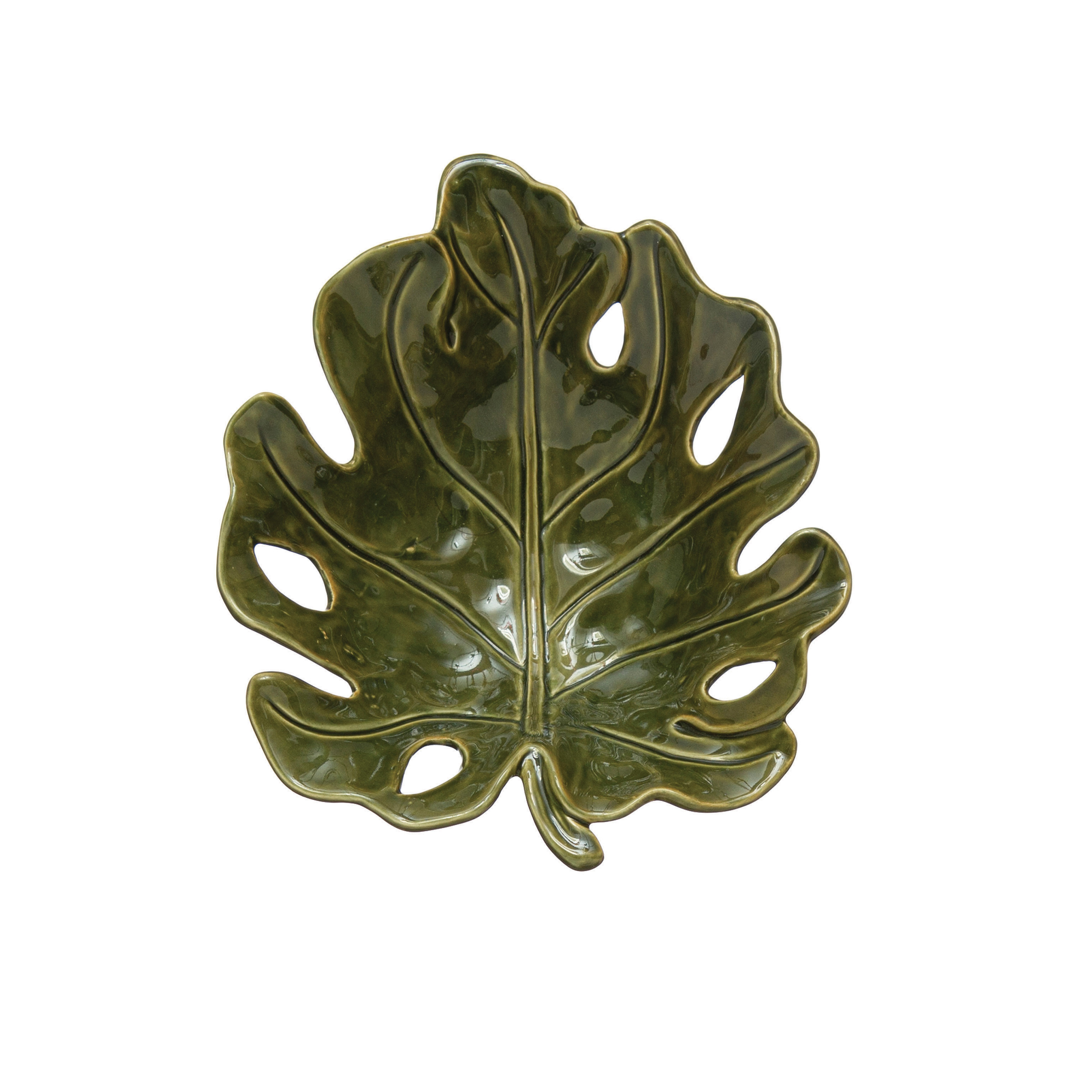Green stoneware leaf bowl in a reactive glaze. Beautifully corral small everyday items, or decoratively display dried botanicals in this striking accent bowl. Made from 100% stoneware. Curate a space that reflects your unique sense of style with intentionally designed home décor.
