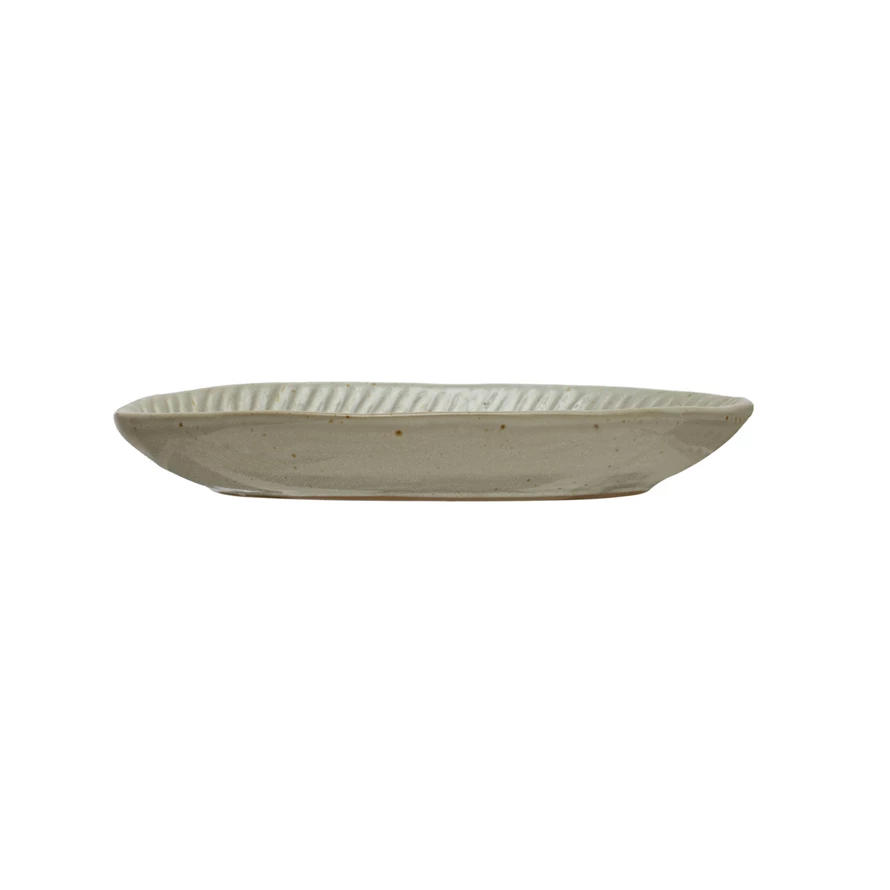 Catalog Name: 7-3/4"L x 5-1/2"W Debossed Stoneware Plate, Reactive Glaze, White (Each One Will Vary)