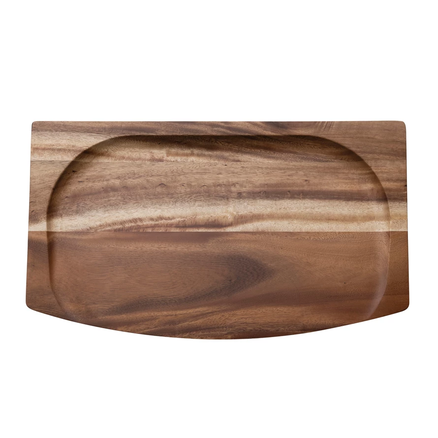 Our thoughtfully curated collection of charcuterie and cutting boards showcases an expansive selection of natural materials and artisanal silhouettes that are all intentionally designed for the modern host. Elevate cocktail hour or evening gatherings with an offering of stylishly versatile pieces including artfully crafted cheese and charcuterie boards to stylishly versatile cutting boards. Choose from a wide array of materials from marble to wood, and styles from rustic and modern to farmhouse and glam. Curate a dazzlingly elegant display for a dinner party, or simply add a touch of style to daily rituals with a piece that is sure to impress. This rustic serving tray features a solid wood silhouette with a raised edge in a natural finish. This piece is food safe. Hand wash only. Made from suar wood.