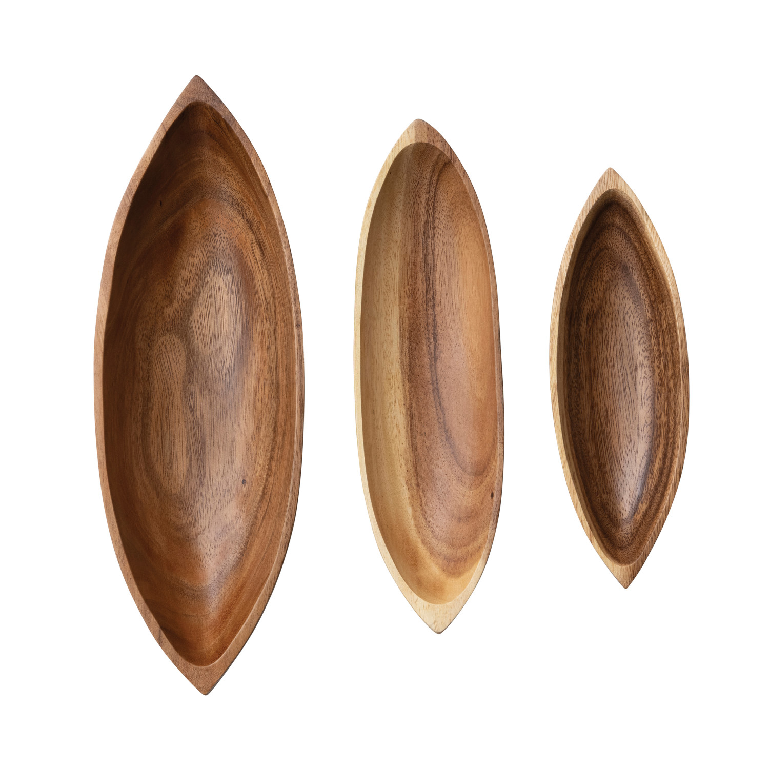 Acacia Wood Boat Shaped Bowls, Natural, Set of 3