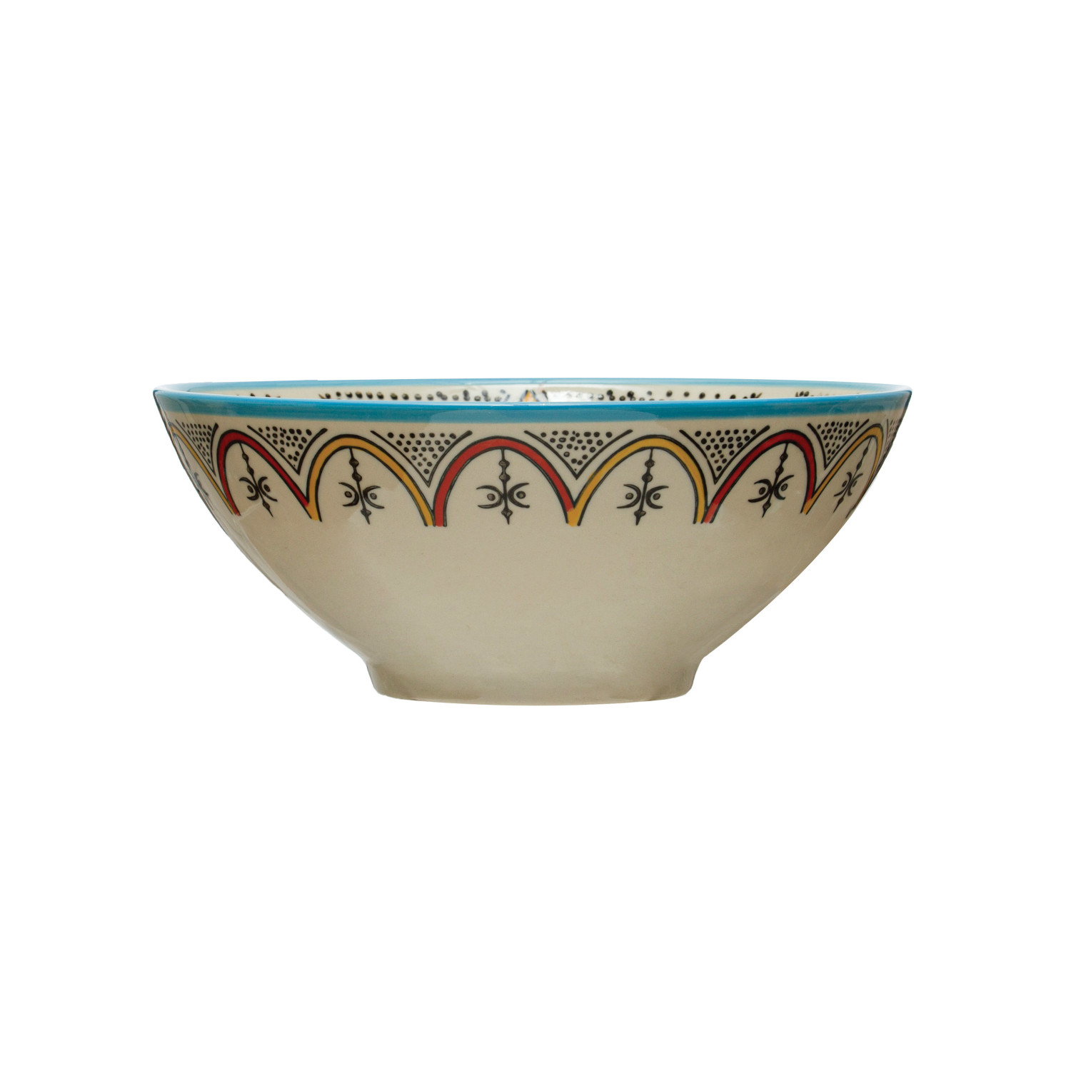 Hand-Painted Stoneware Bowl w/ Pattern, Multi Color