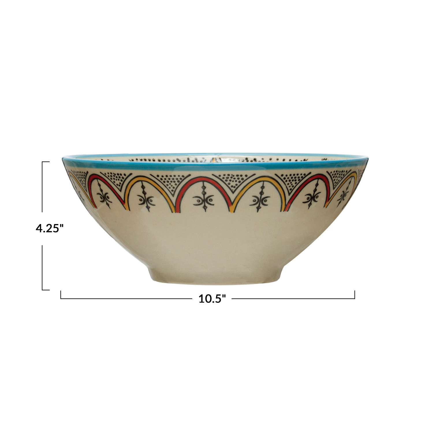 Catalog Name: 10-1/2" Round x 4-1/4"H Hand-Painted Stoneware Bowl w/ Pattern, Multi Color