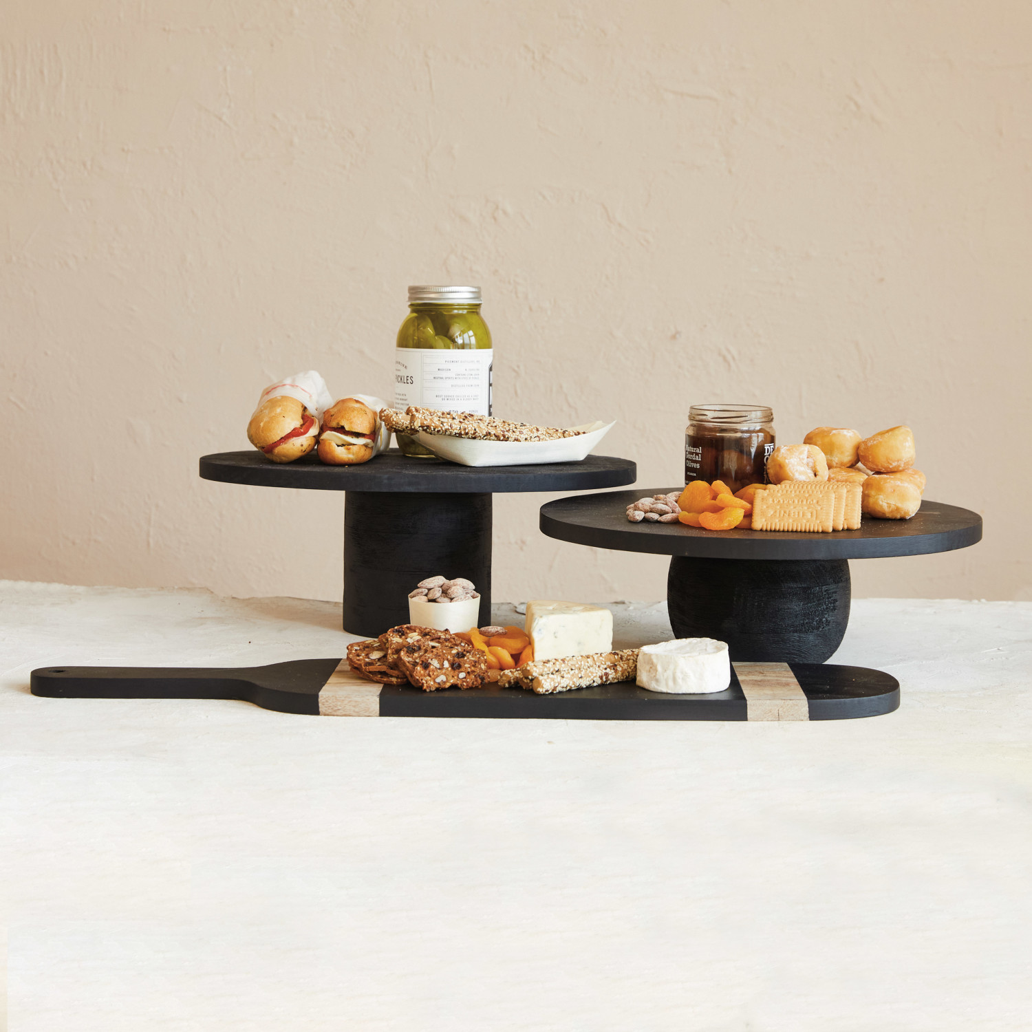 This black mango wood pedestal is a wonderful way to add height and elegance to the home. The pedestal is made of mango wood painted black and polished to create a smooth, shiny surface. The pedestal has an oval shape ideal for elevating or displaying cakes, pies, or other desserts that suit any farmhouse, French country, lodge, or Scandinavian home. The pedestal measures 16 inches in length, 12 inches in width, and 6.25 inches in height and can fit any space. This black mango wood pedestal is a versatile and beautiful piece to enhance the space.