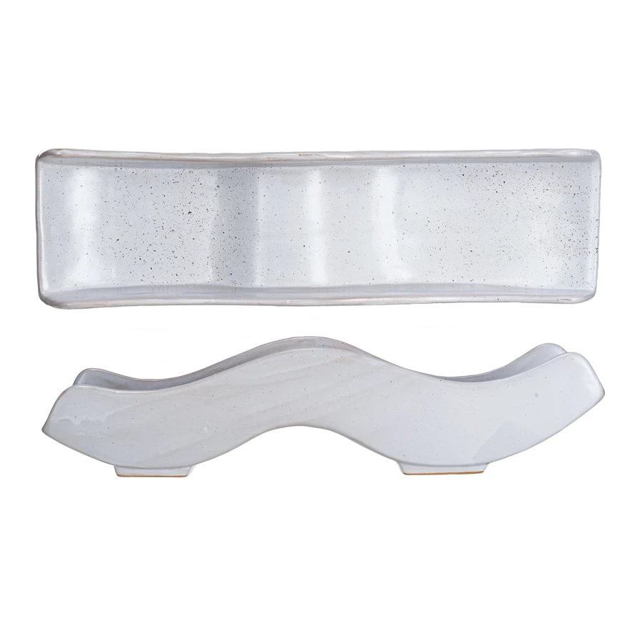 Catalog Name: 13-1/4"L x 3-1/2"W x 3"H Stoneware Wave Tray, Reactive Glaze, White (Each One Will Vary)