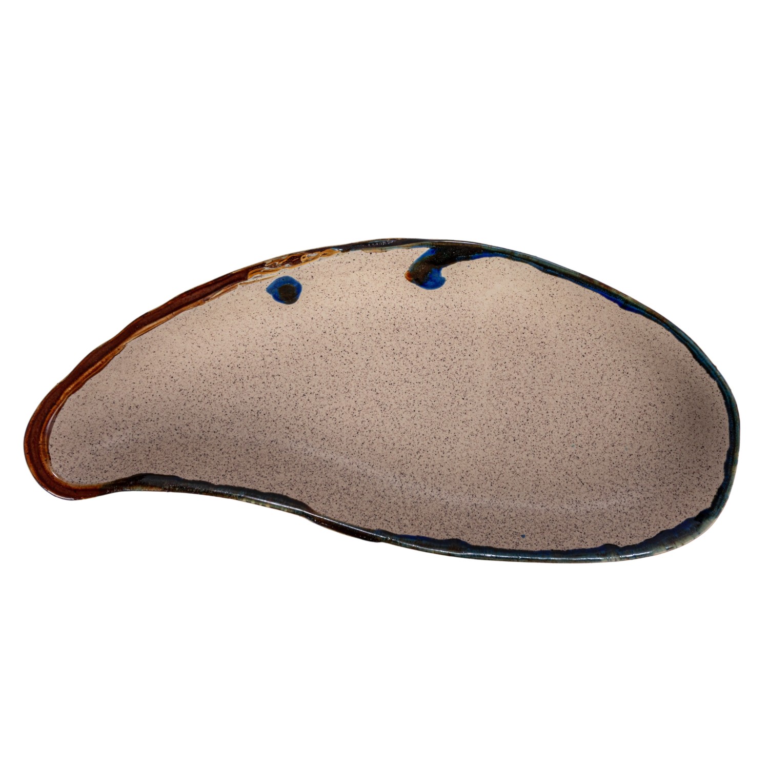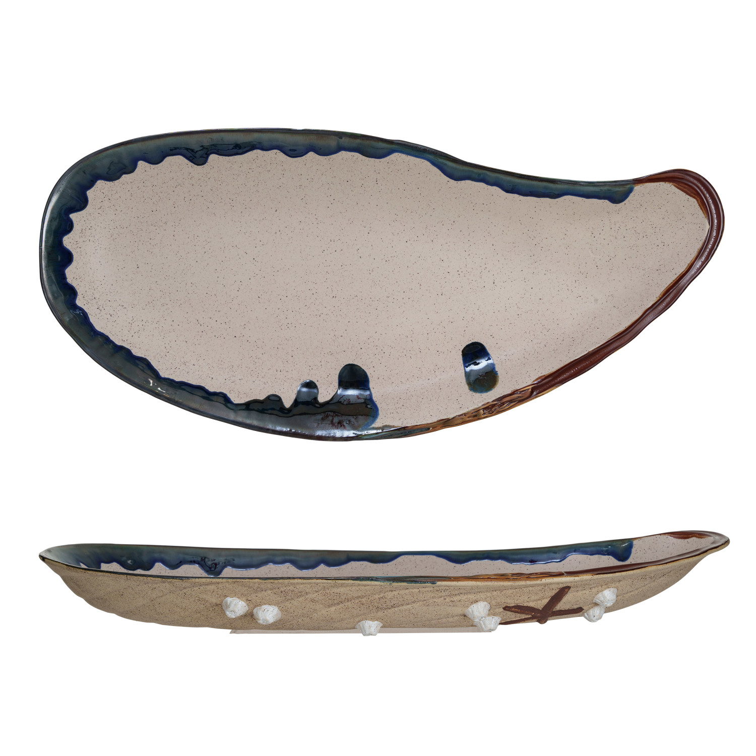 Catalog Name: 21"L x 9-1/2"W x 1-3/4"H Stoneware Mussel Shell Shaped Plate, Reactive Glaze, Brown (Each One Will Vary)