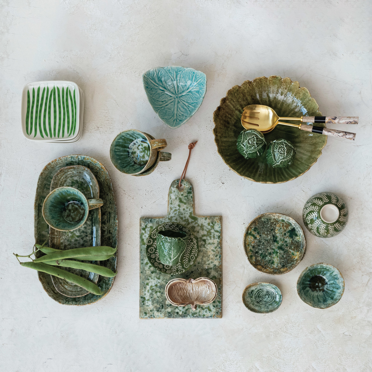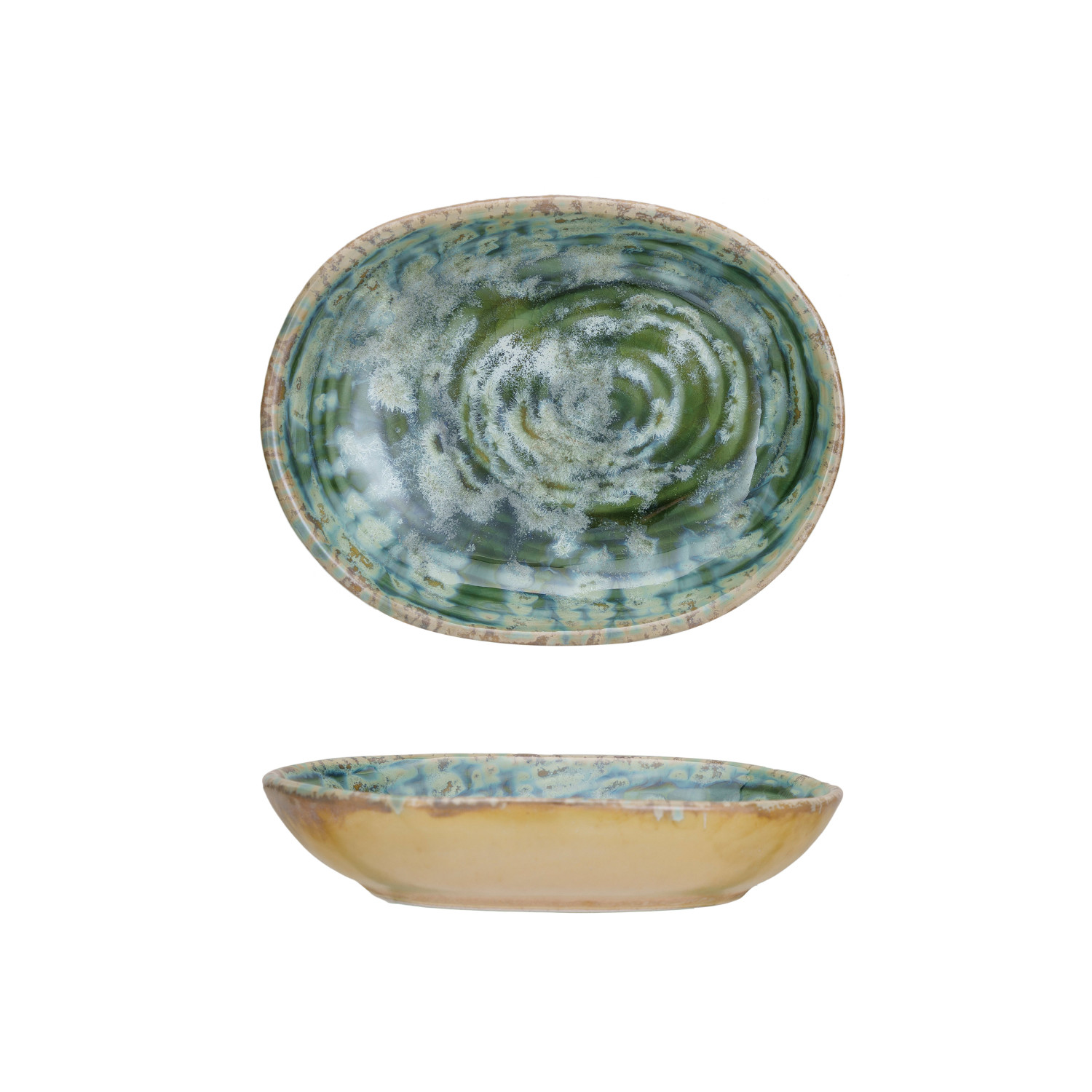 Catalog Name: 4"L x 3-1/4"W Embossed Stoneware Dish, Reactive Crackle Glaze, Teal (Each One Will Vary)