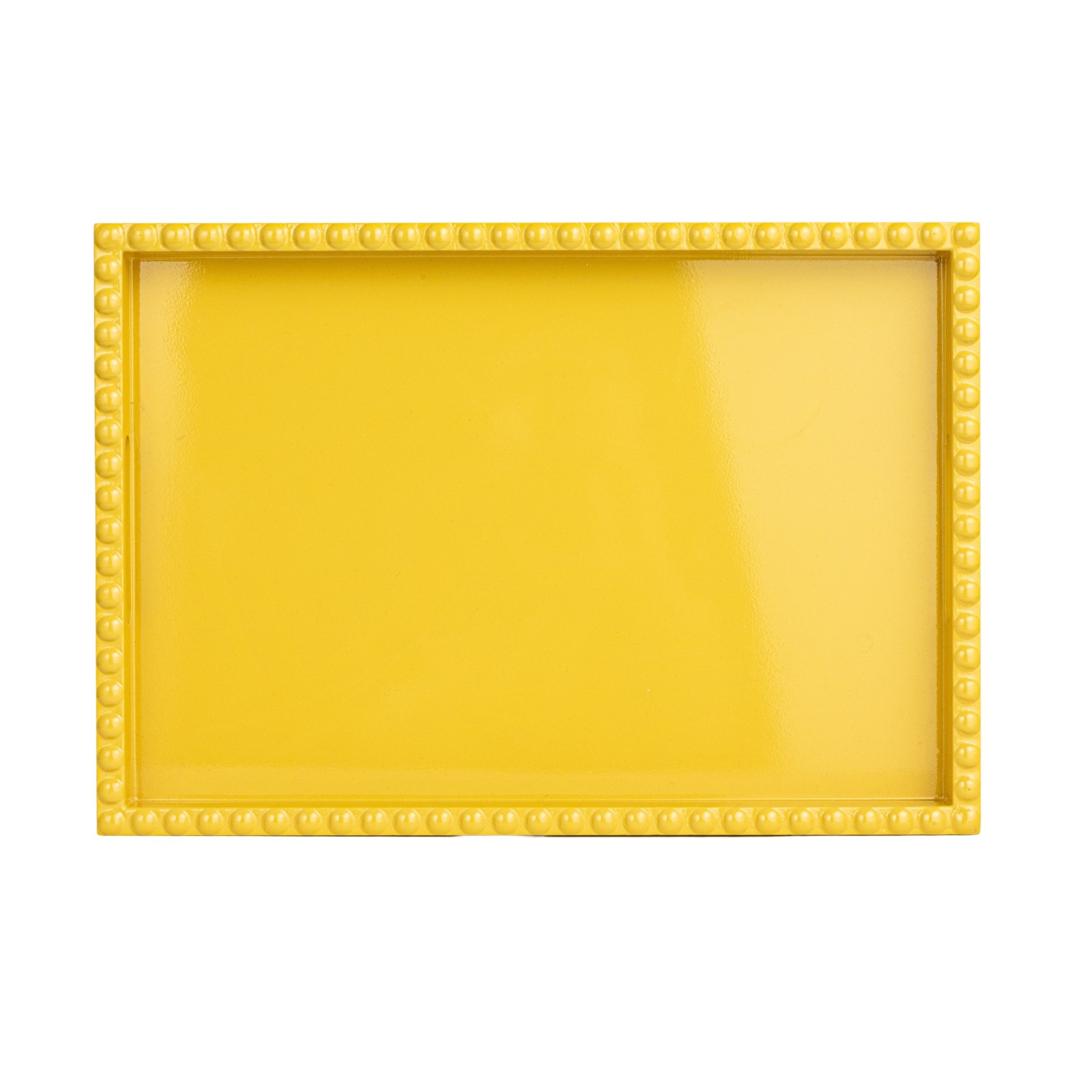 Catalog Name: 19"L x 13-1/4"W x 2"H MDF & Rubberwood Lacquered Tray w/ Hobnail Edge & Handles, Yellow