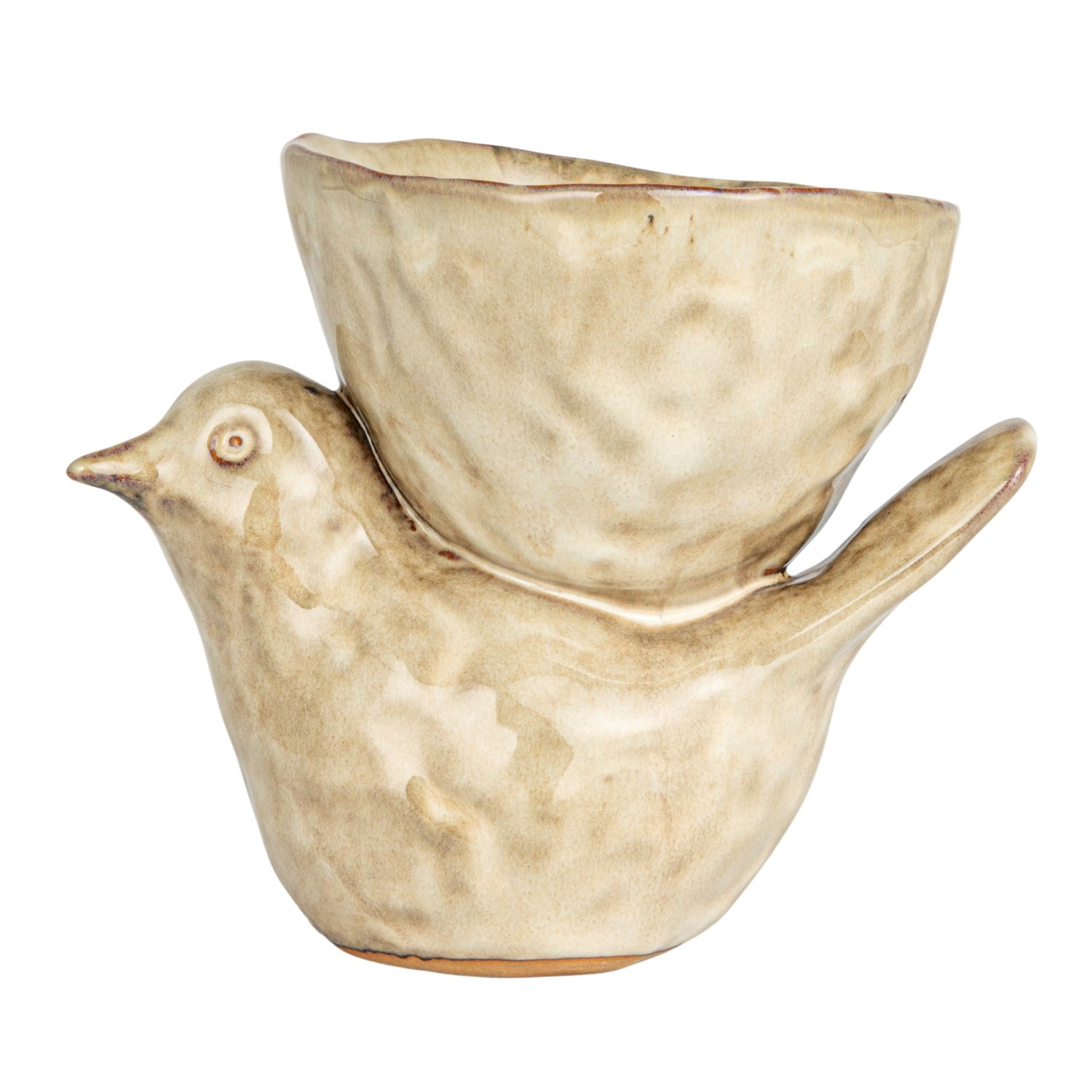 Catalog Name: 6-1/4"L x 4-1/2"W x 5-1/4"H Stoneware Bird w/ Bowl, Reactive Glaze, Cream Color (Each One Will Vary)