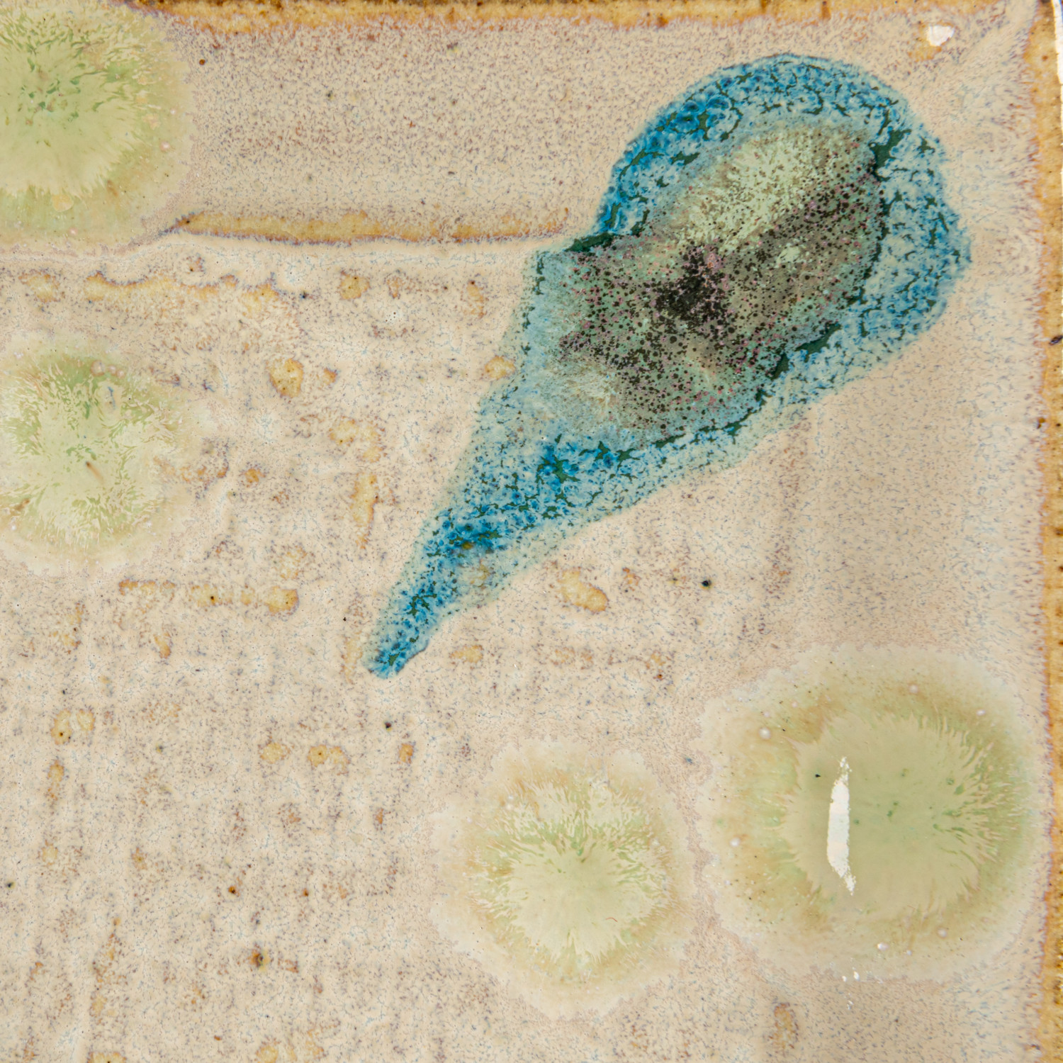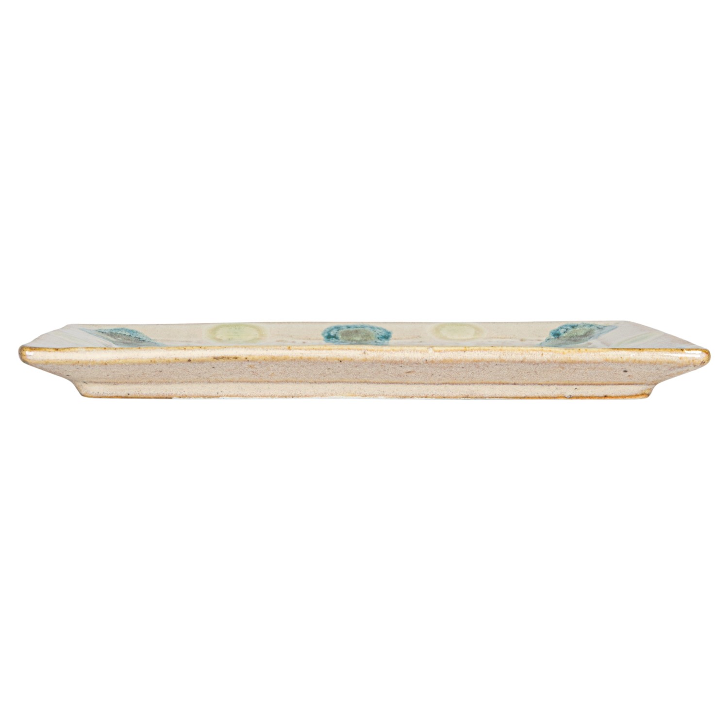 Catalog Name: 9-1/4"L x 6-1/4"W Hand-Painted Stoneware Platter, Reactive Glaze, Green, Blue & Cream Color (Each One Will Vary)