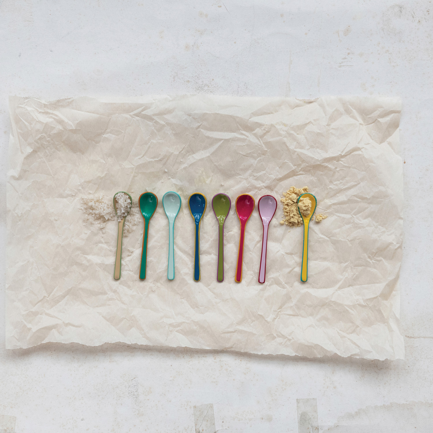 Enameled Stainless Steel Salt Spoon with Colored Edge, 8 Styles