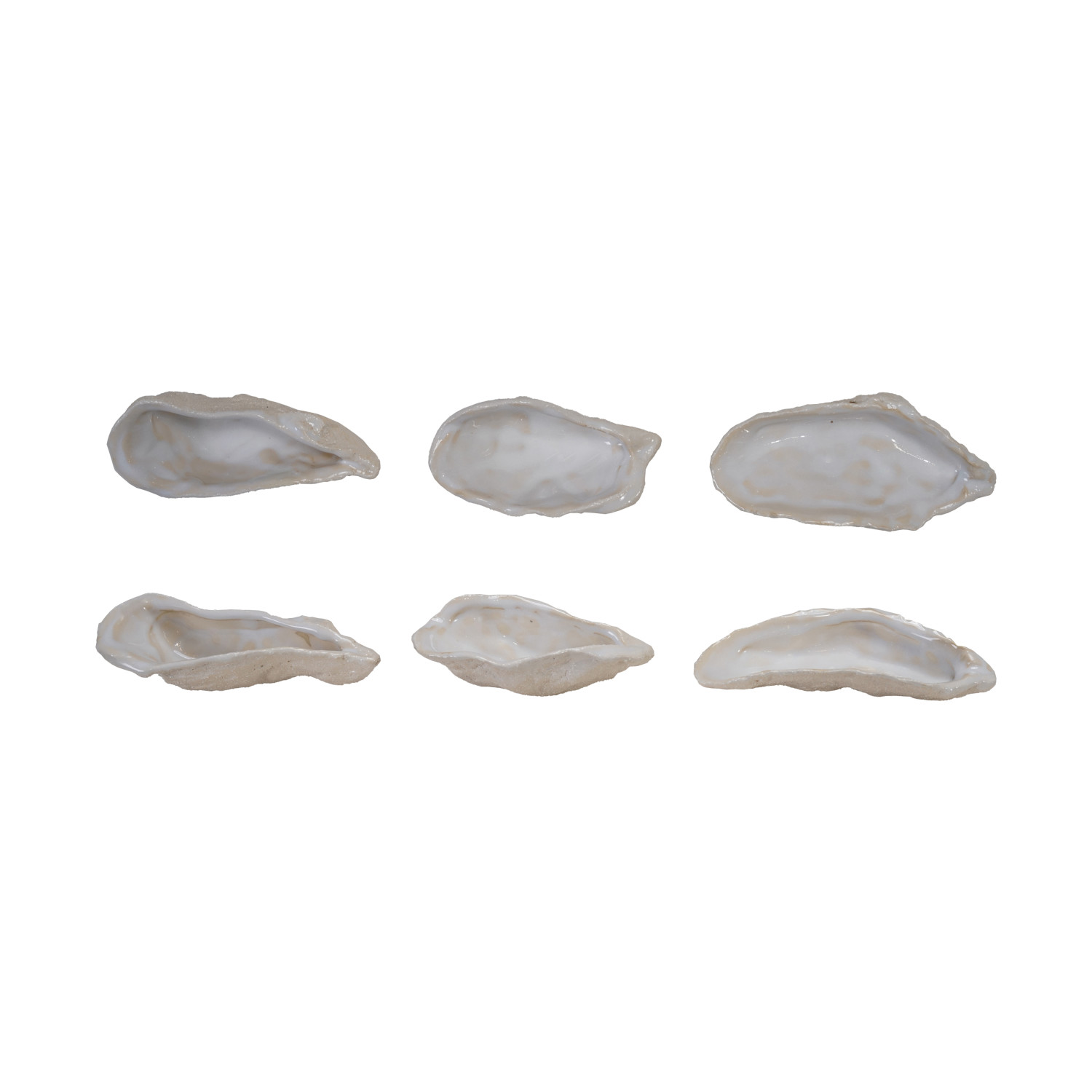 Catalog Name: 4"L - 5-1/2"L Stoneware Oyster Shell Shaped Dish, Reactive Glaze & Unglazed, White, 3 Styles (Each One Will Vary)
