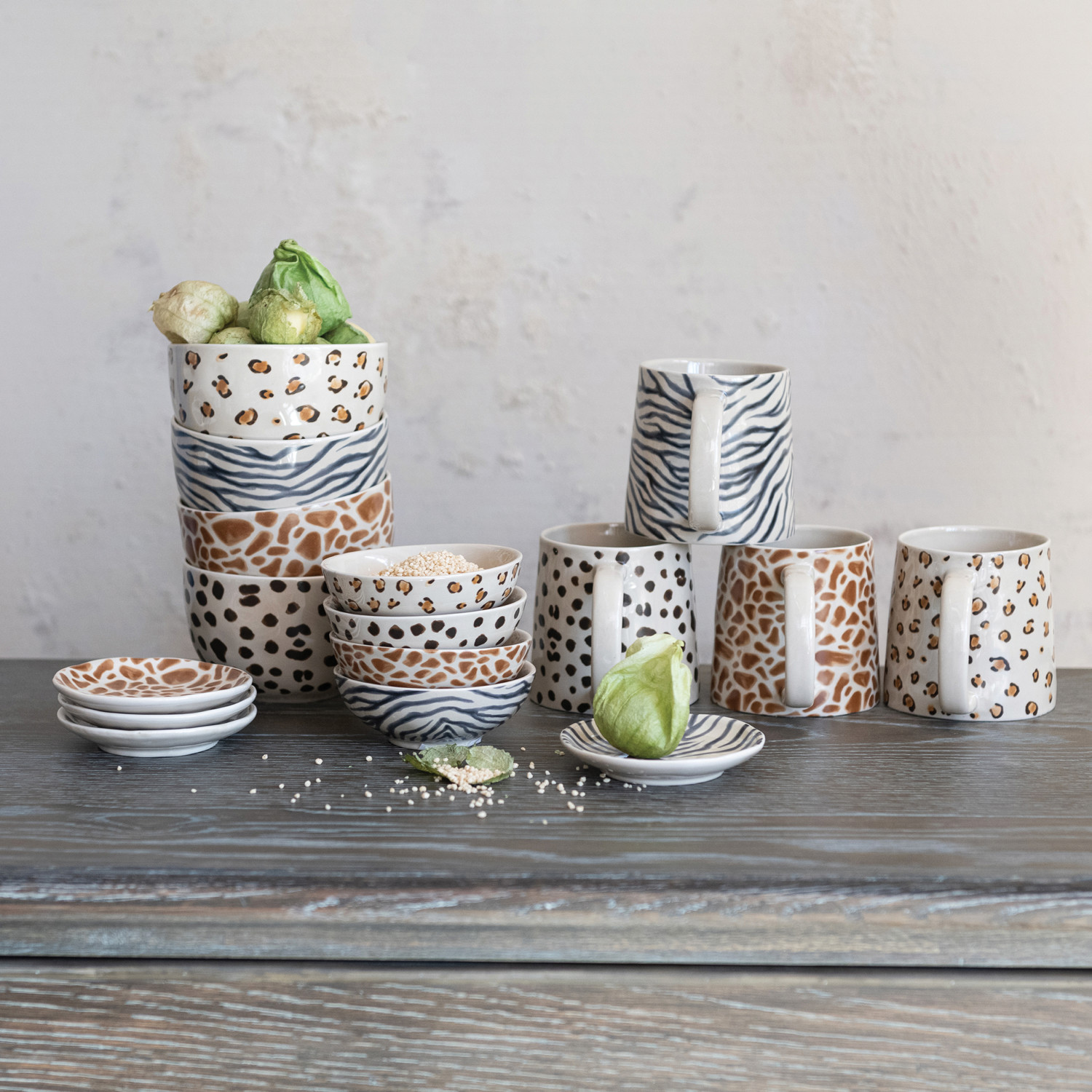 Stoneware Bowl with Animal Print Decal, 4 Styles