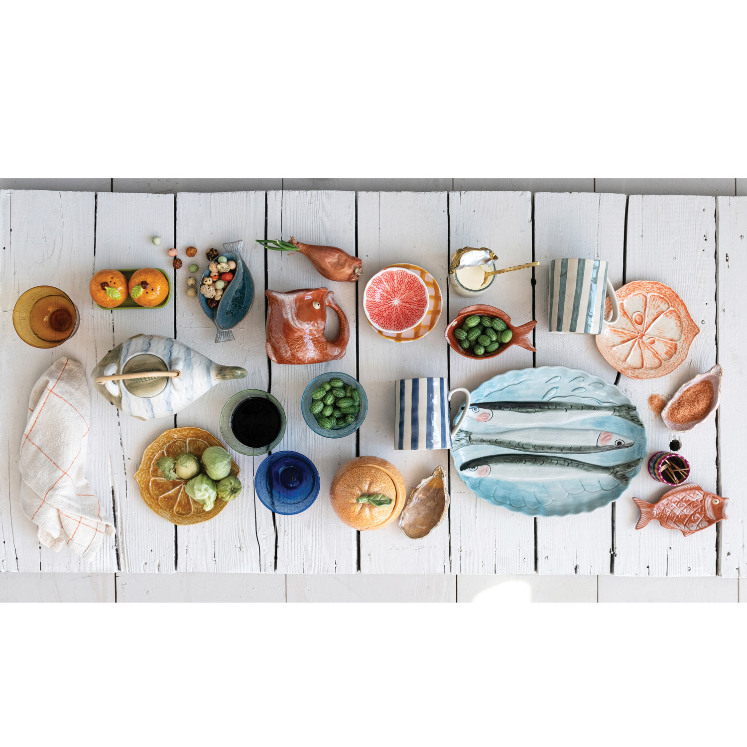 Stoneware Fish Shaped Dish, Reactive Glaze (Each One Will Vary)