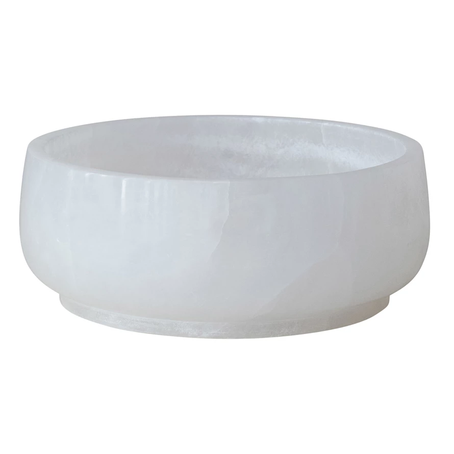 Catalog Name: 10" Round x 3-3/4"H Alabaster Bowl, White (Each One Will Vary)