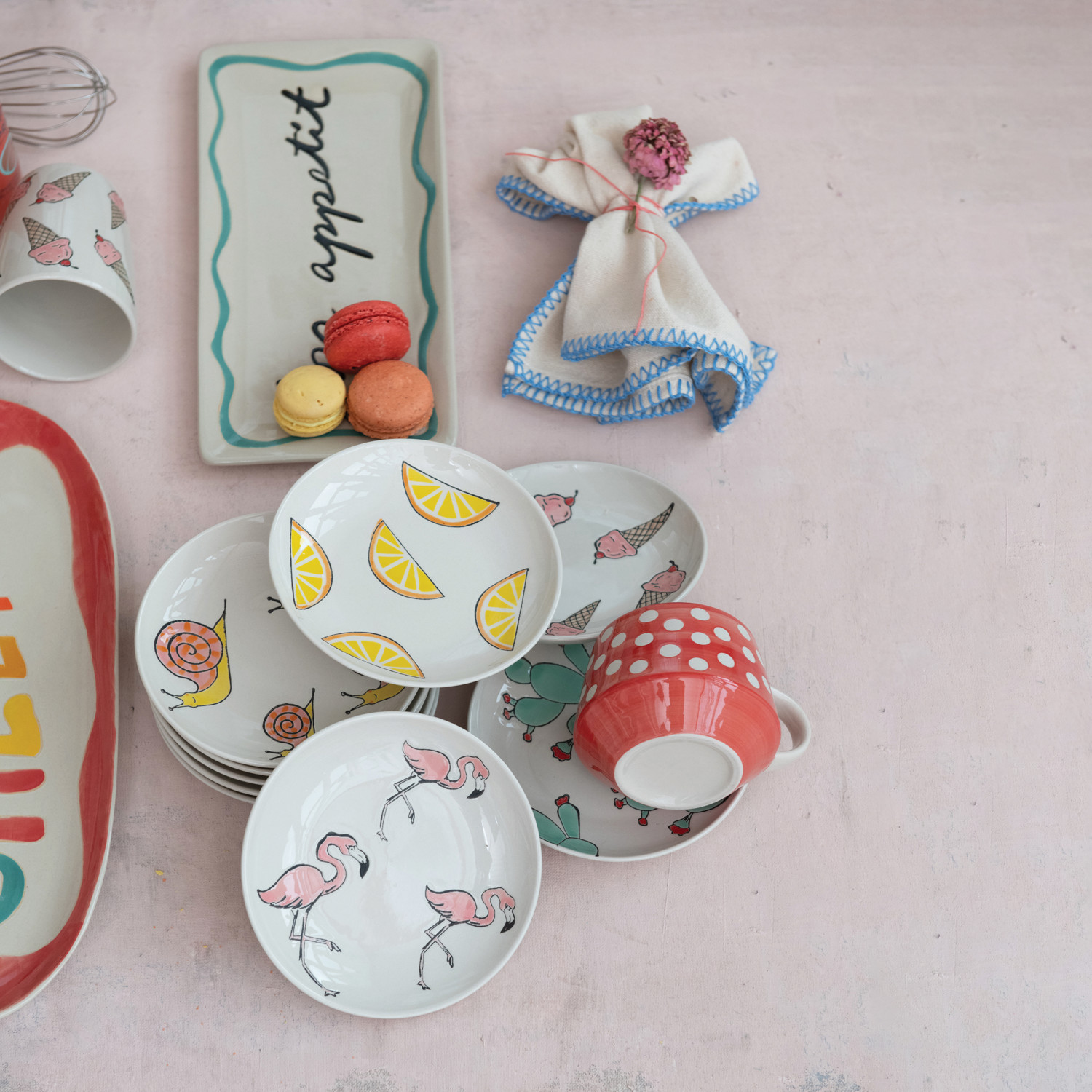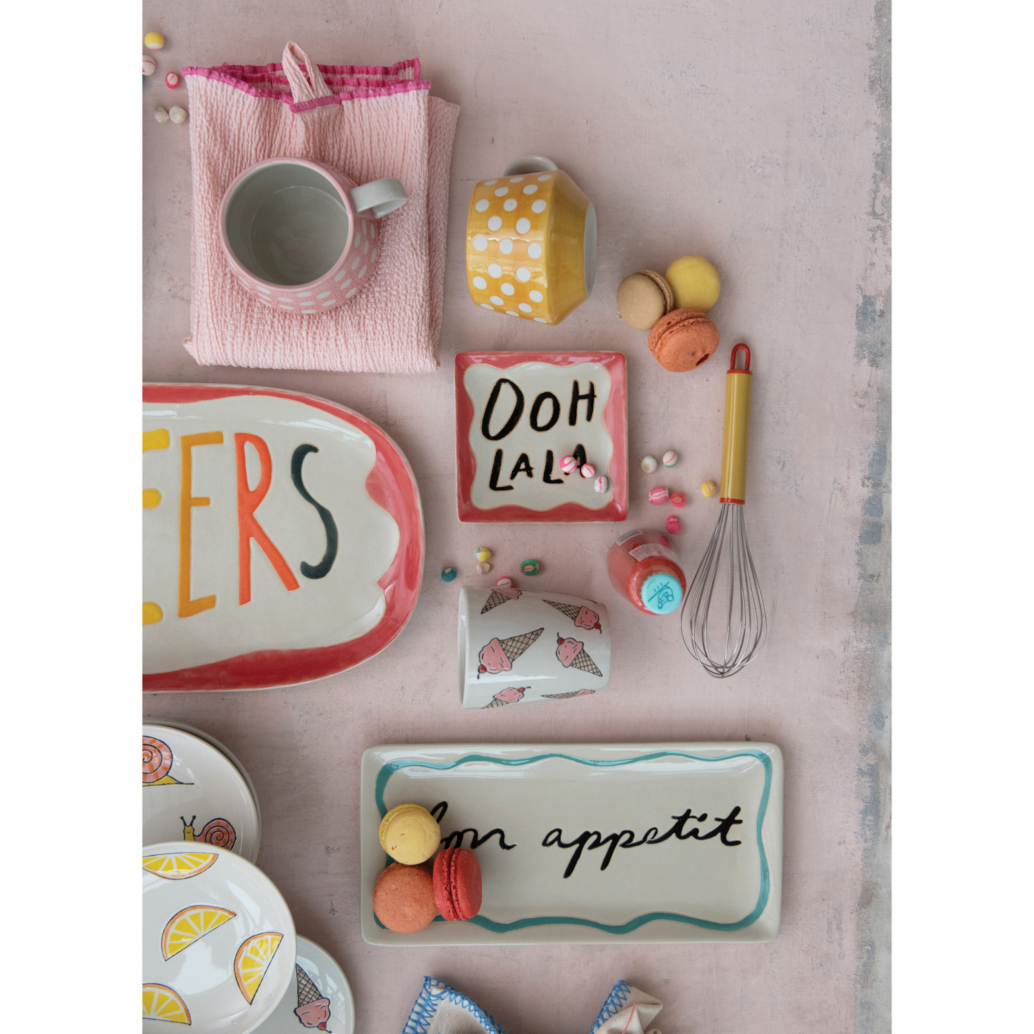 Catalog Name: 15-3/4"L x 10"W Stoneware Platter w/ Wax Relief Word "Cheers", Multi Color ©