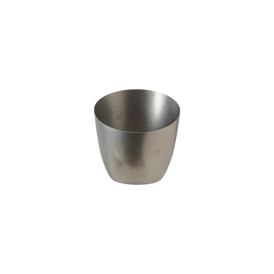 Catalog Name: 5-1/4" Round x 5-3/4"H Stainless Steel Slanted Container, Brushed Pewter Finish
