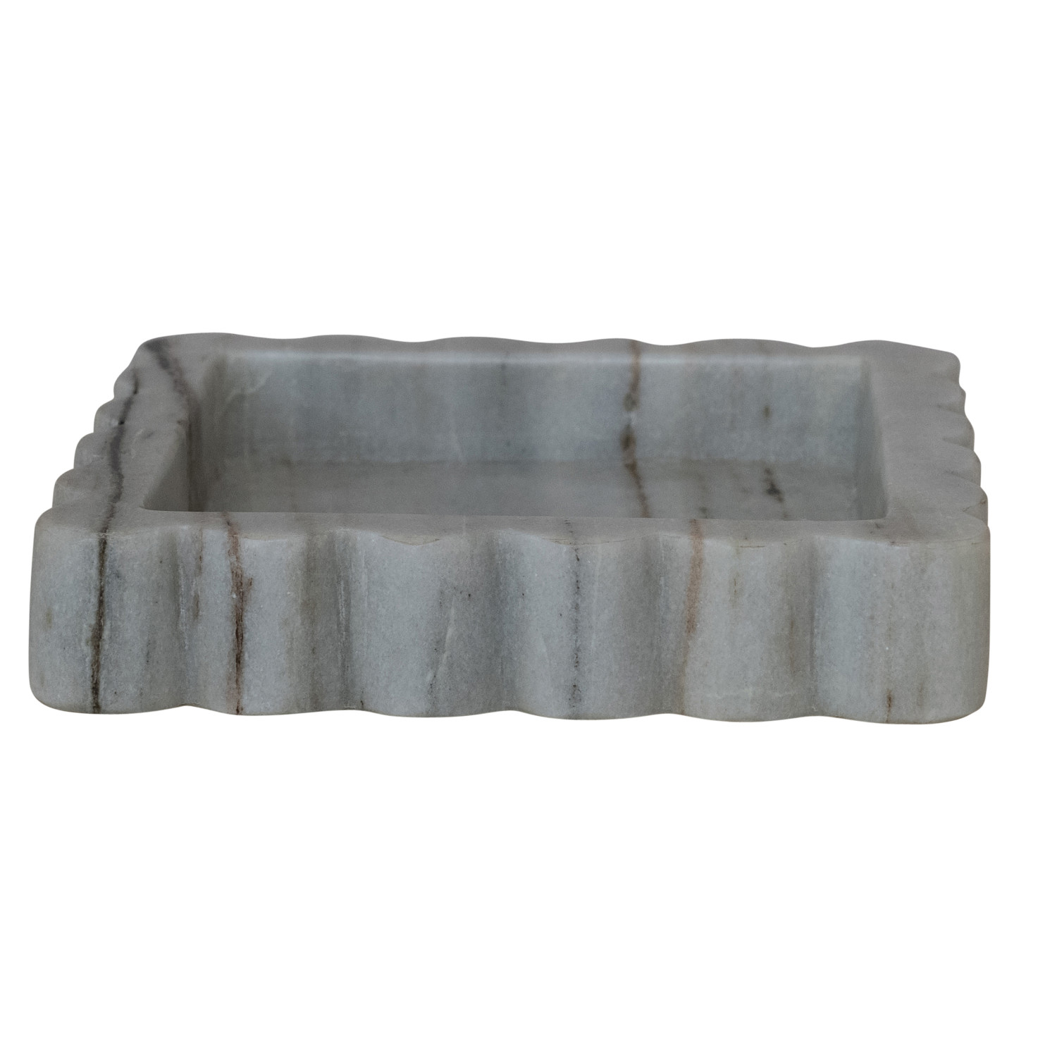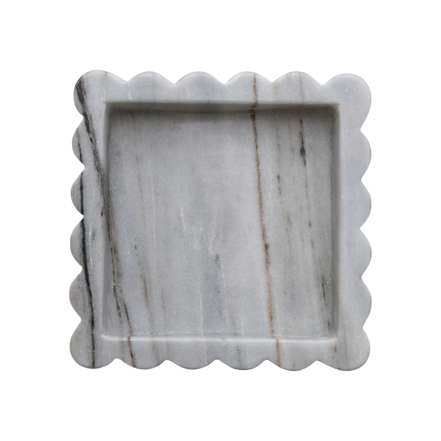 Catalog Name: 8" Square Marble Scalloped Tray, Grey Melange (Each One Will Vary)