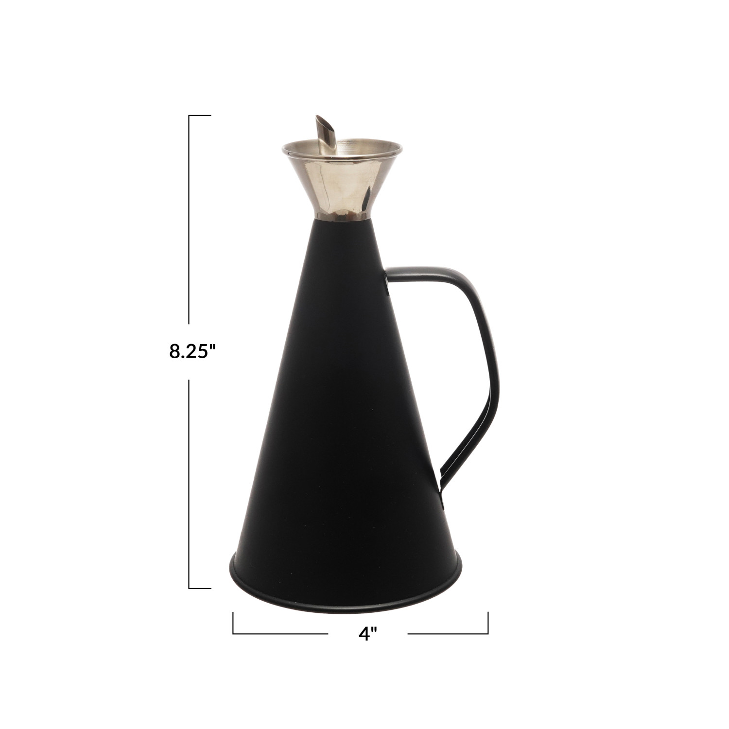 Catalog Name: 4" Round x 8-1/4"H 16 oz. Stainless Steel Oil Cruet, Black