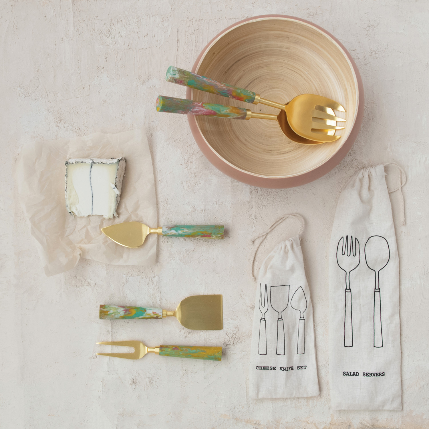 Salad Servers w/ Marbled Resin Handles, Set of 2 in Drawstring Bag (Each One Will Vary)