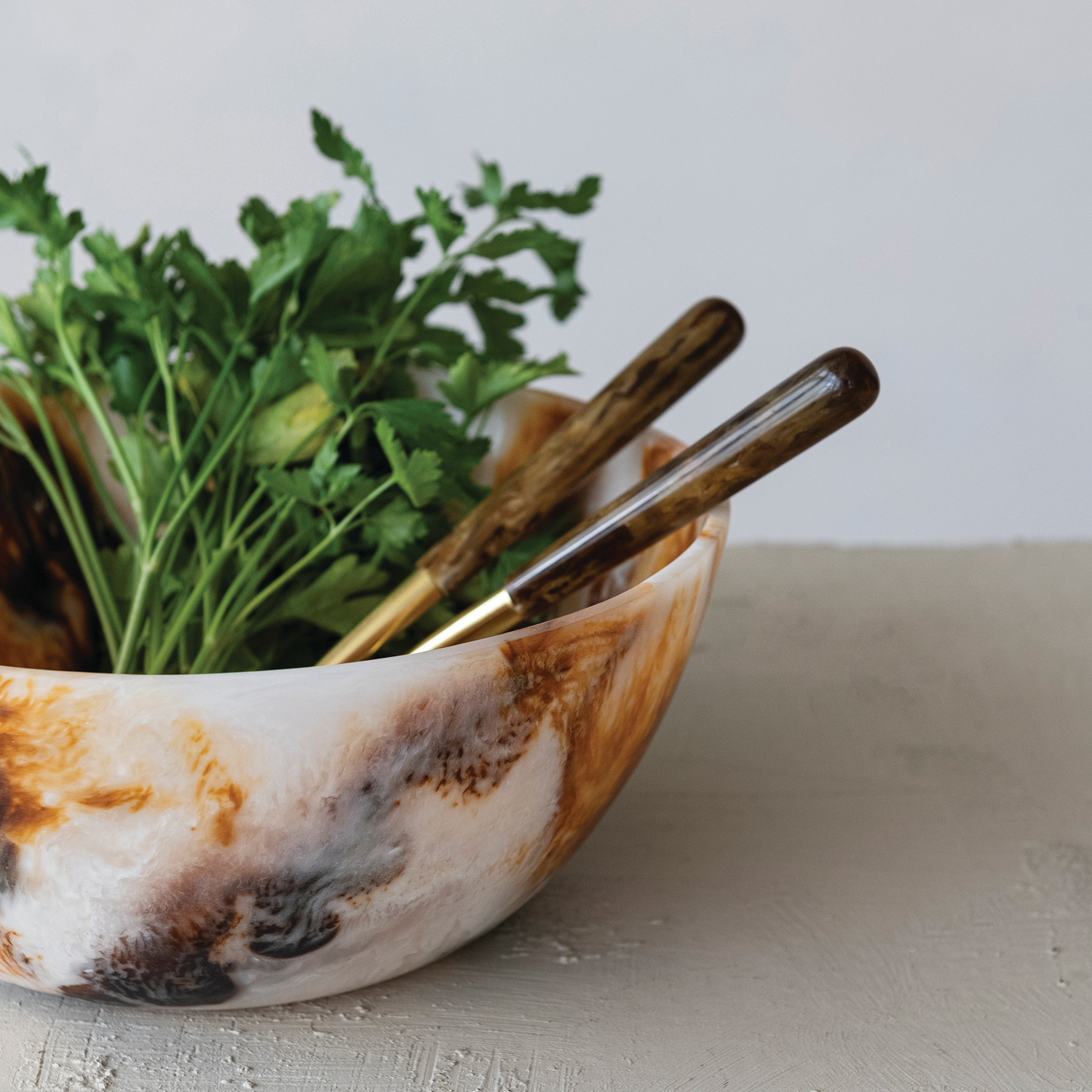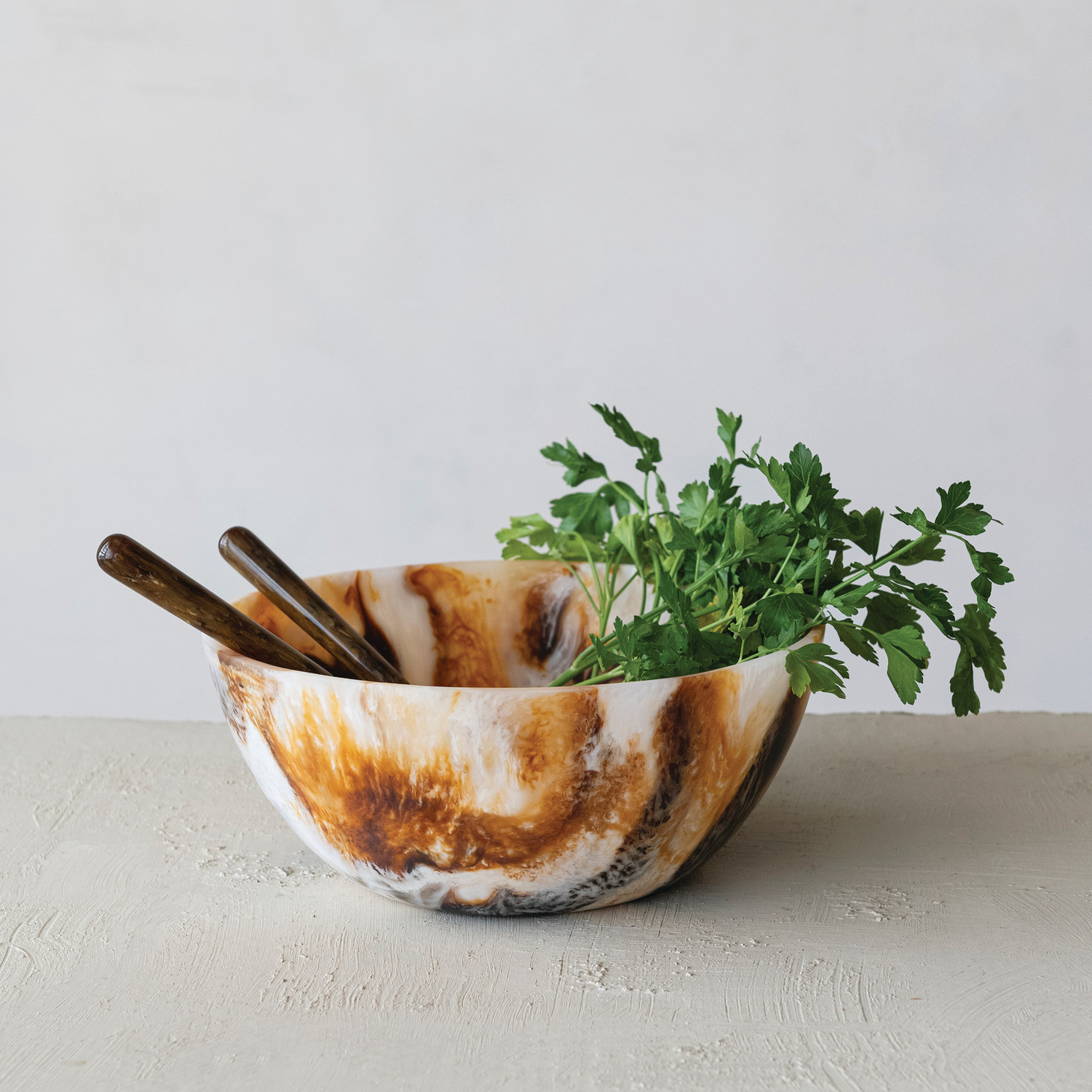 Marbled Resin Bowl, Brown & Cream Color (Each One Will Vary)